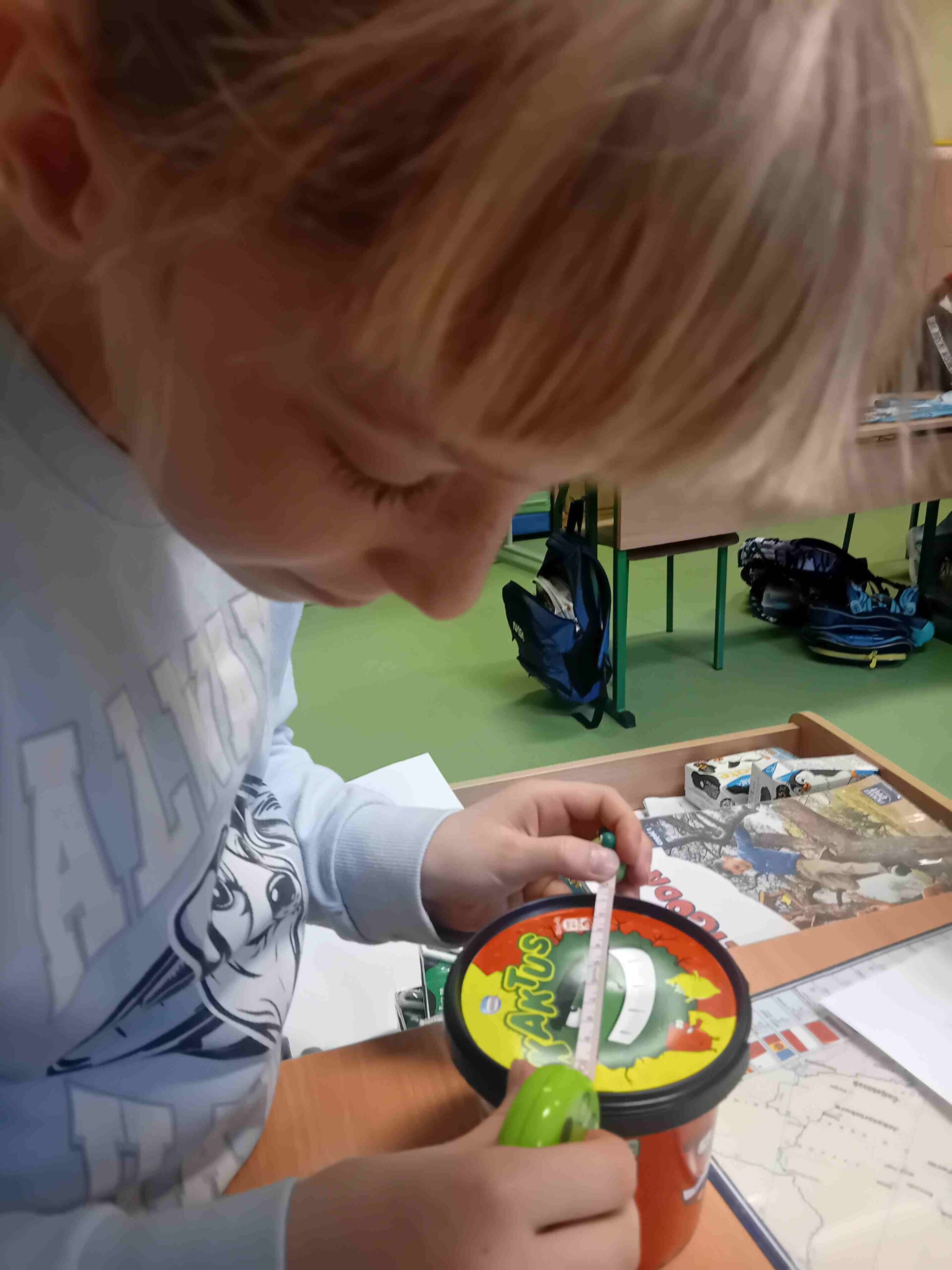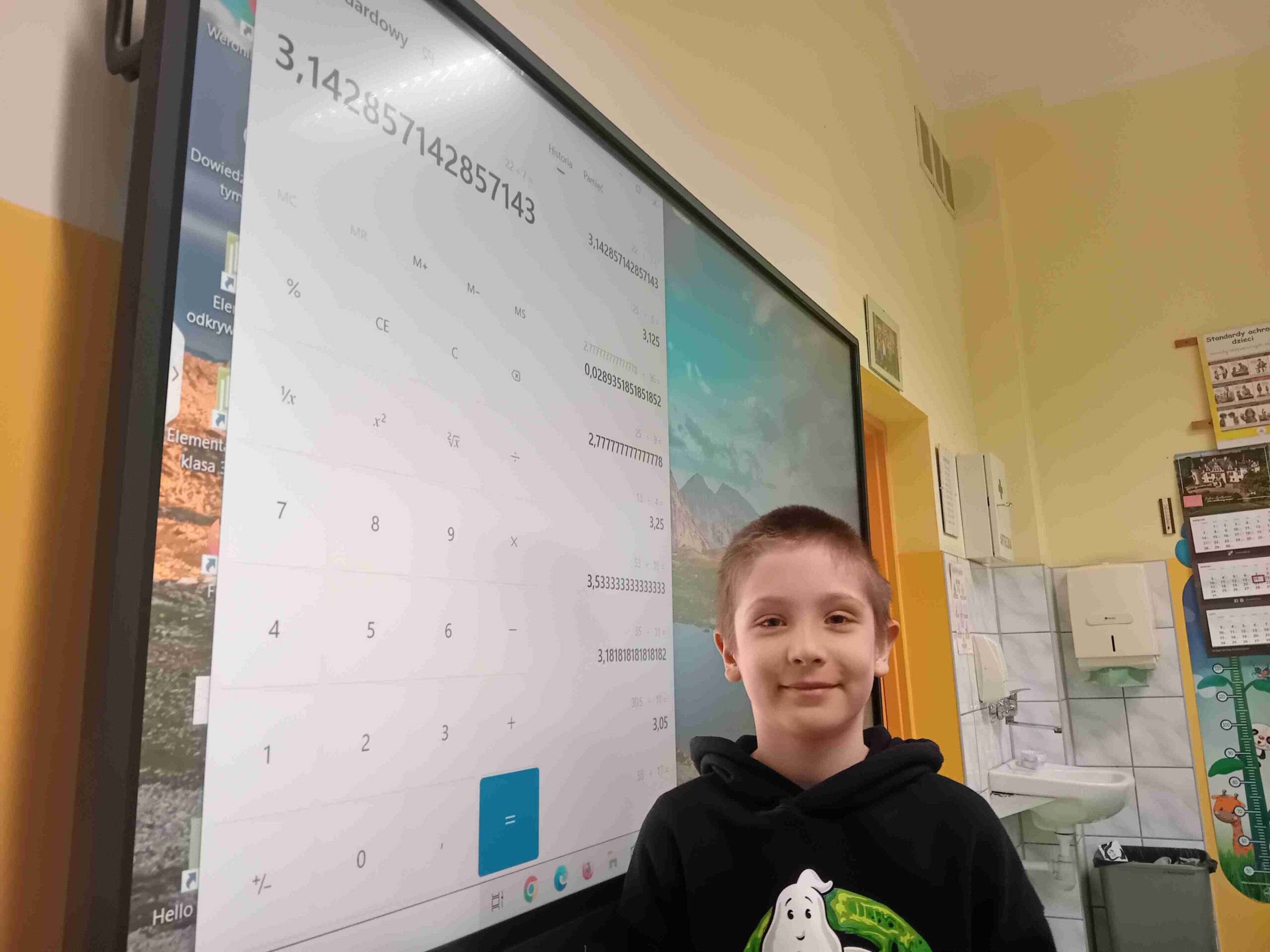 14 marca obchodzimy dzień liczby pi. Ta data zapisie amerykańskim to 3.14 nawiązującą do liczby pi. Z tej okazji uczniowie klasy 3b poszukiwali liczbę pi w każdym zakątku swojej klasy, odnajdując okrągłe przedmioty, mierzyli ich obwód i średnicę. Największa radość pojawiała się, gdy ich iloraz wynosił dokładnie 3.14!