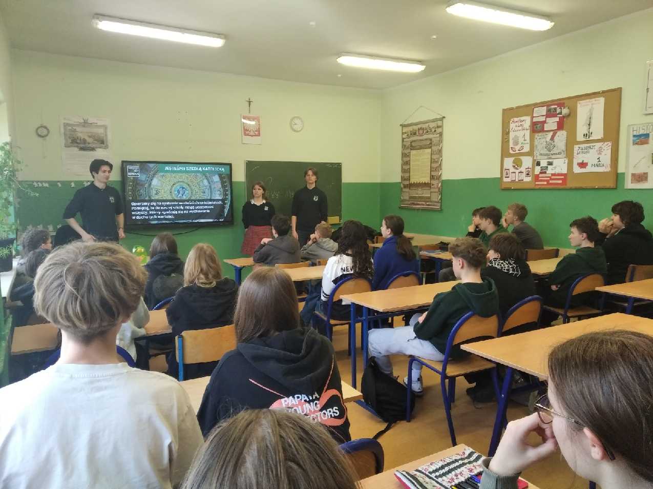 3 kwietnia, 2025 LO ss Urszulanek w naszej szkole 2.04.2025 r. w ramach doradztwa zawodowego uczniowie klas ósmych wzięli udział w spotkaniu z przedstawicielami LO ss Urszulanek z Wrocławia. Podczas zajęć poznali specyfikę tej szkoły oraz dowiedzieli się, dlaczego warto do niej uczęszczać. Alicja Dubaj