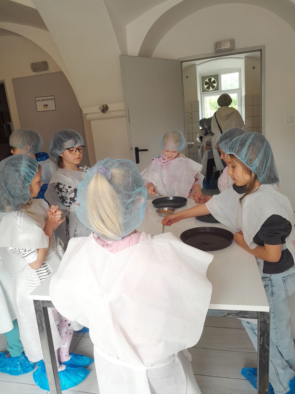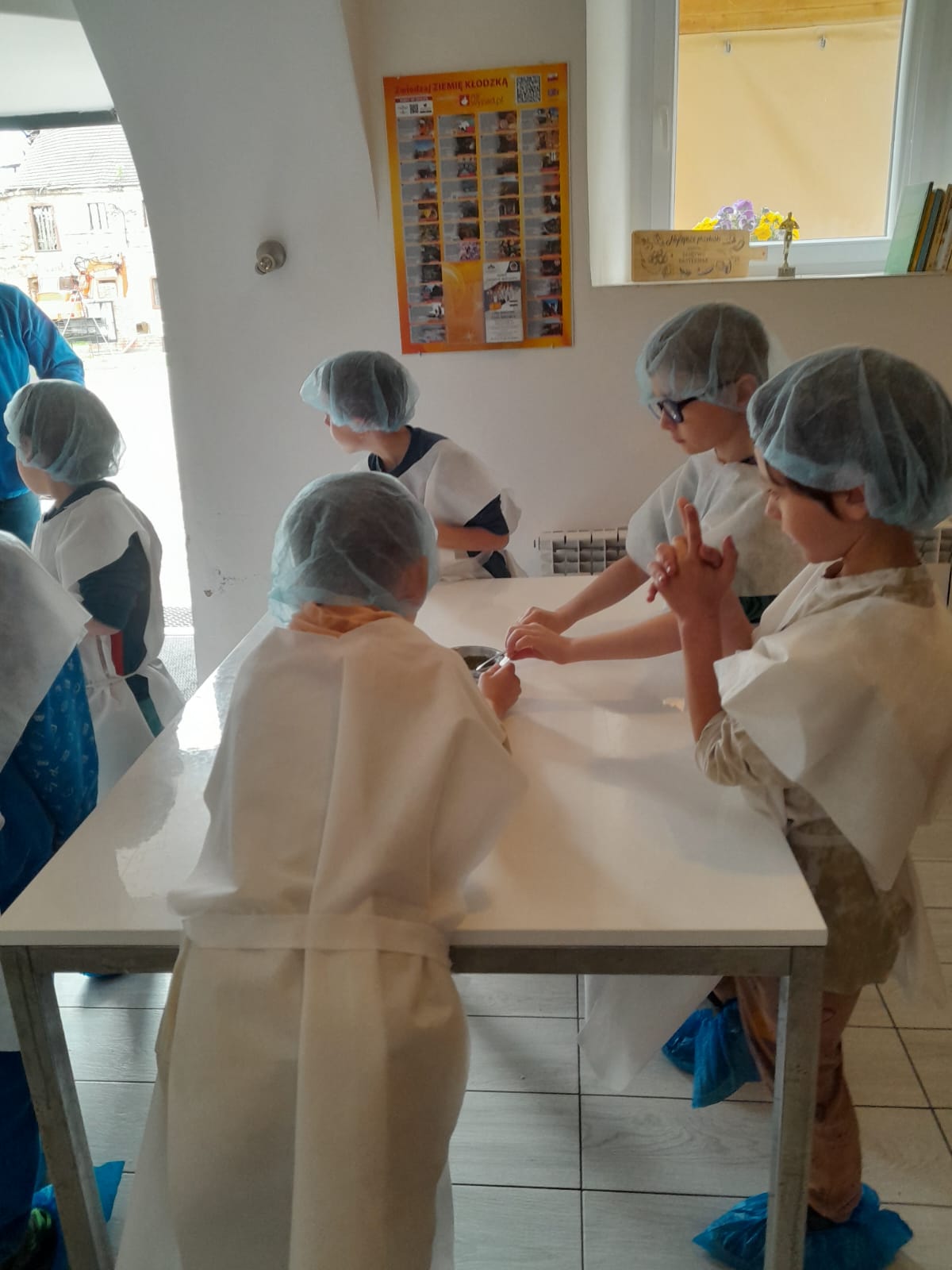 6 maja, dzieci z klasy z 1c i Zerówki, wzięły udział w warsztatach serowarskich w Lutomierzu, „WARZENIE SERA NA WESOŁO”. Na powitanie, czekał na dzieci pyszny poczęstunek – śniadanie u rolnika, w tym cieplutkie racuszki. Dzieci miały okazję, zapoznać się z pracą w serowarni, warzeniem sera. Uczestnicy, otrzymali odzież ochronną. Każdy z uczestników otrzymał swoją formę, mógł wybrać zioła i wyrabiać ser. Była również degustacja wyrobów. Na zakończenie, dzieci zwiedziły gospodarstwo, skąd roztacza się panorama Gór Sowich oraz Bardzkich. Przed powrotem, dzieci zrobiły drobne zakupy (sery, musy, dżemy).