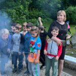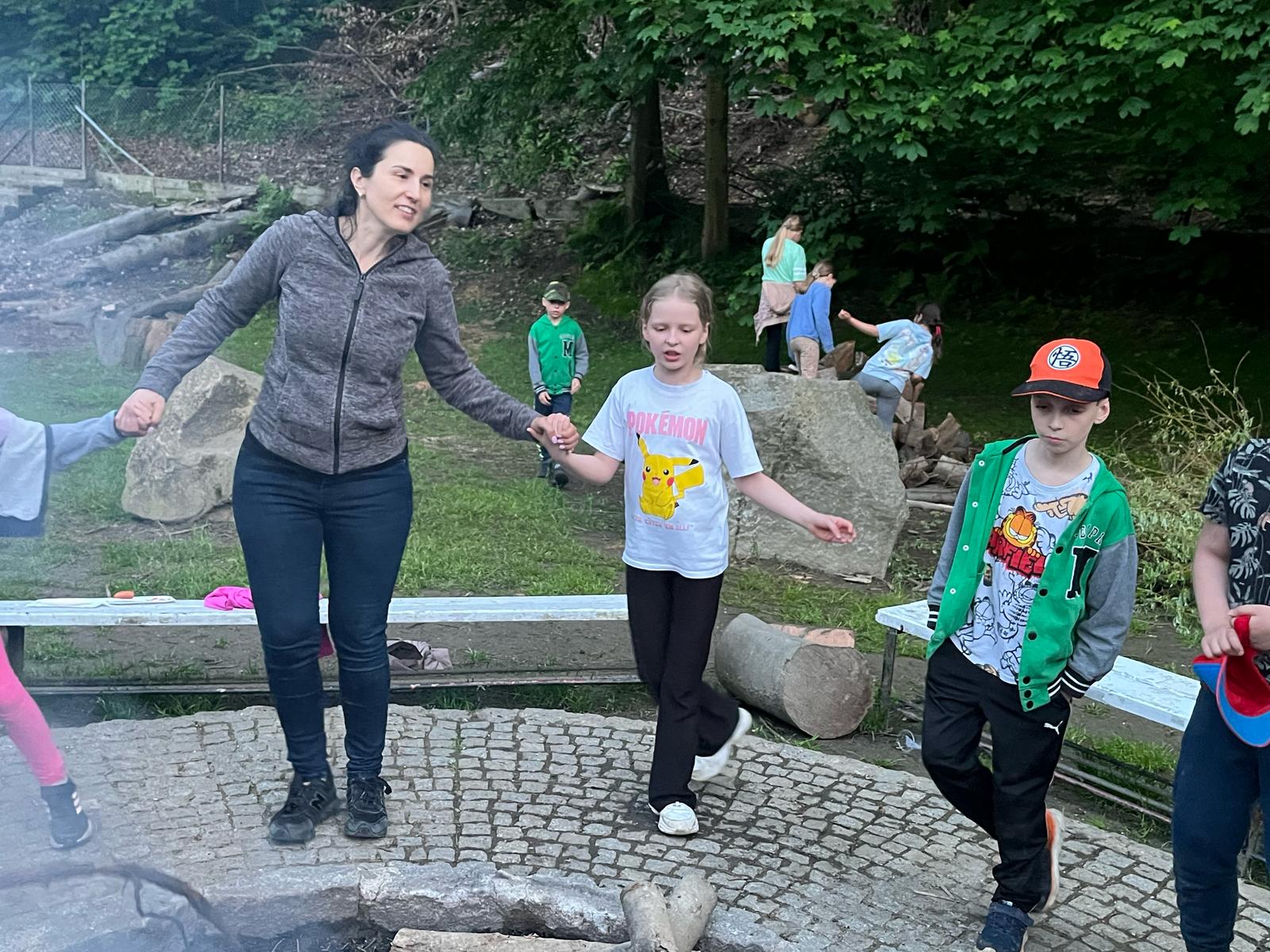 Nie zabrakło również aktywności integracyjnych i rekreacyjnych. Dzieci brały udział w licznych zabawach integracyjnych, które sprzyjały budowaniu relacji oraz rozwijaniu współpracy w grupie. Jednym z najbardziej emocjonujących punktów programu było poszukiwanie złota – spotkanie z przewodnikiem, który przybliżył uczniom historię regionu i poprowadził warsztaty terenowe.