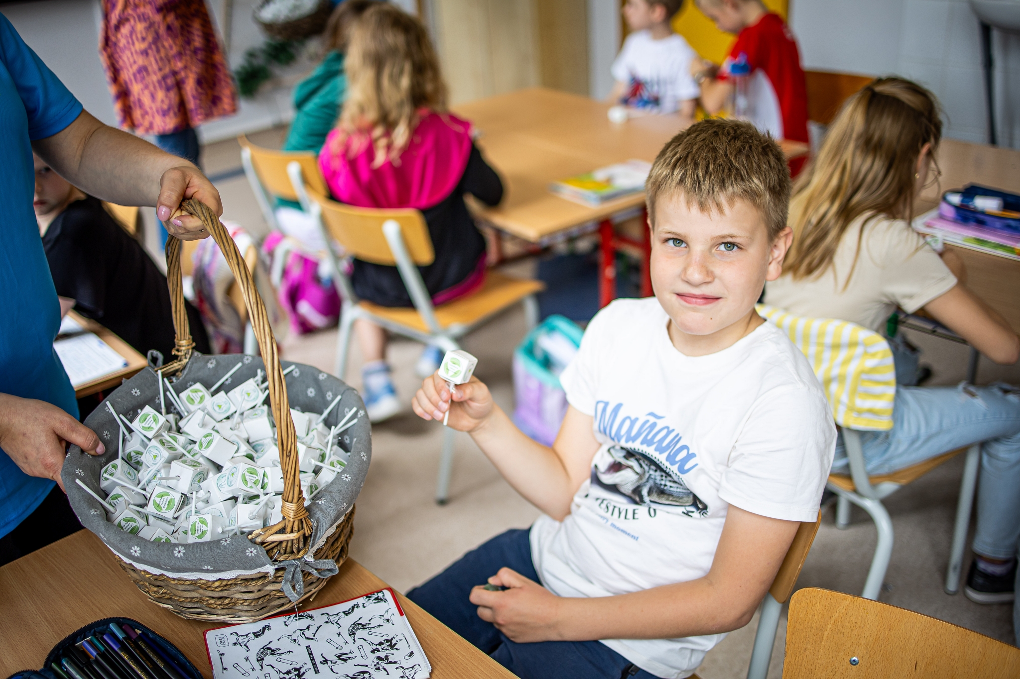 Szkolna Strefa Relaksu „EKO-LUZOWNIA” to wyjątkowe miejsce, które powstało dzięki zaangażowaniu i wsparciu Rady Rodziców oraz Fundacji PGE w ramach programu „Wolontariat Dobrej Energii”.To przestrzeń pełna zieleni, sprzyjająca odpoczynkowi, integracji oraz edukacji ekologicznej. Aby jak najwięcej osób mogło korzystać z „EKO-LUZOWNI” i dowiedzieć się o jej zaletach, wolontariusze fundacji (p. Dominik Makowski i p. Magdalena Zatoń) zorganizowali kampanię promocyjną na terenie szkoły, w ramach której każdy uczeń otrzymał słodki upominek.