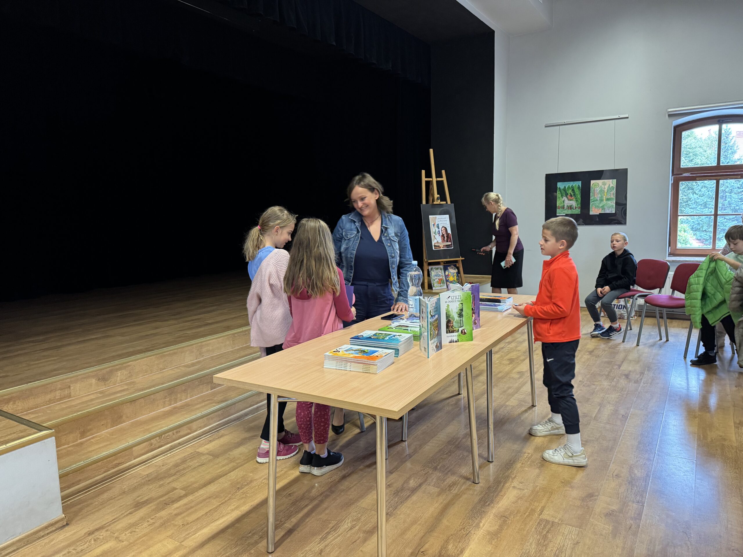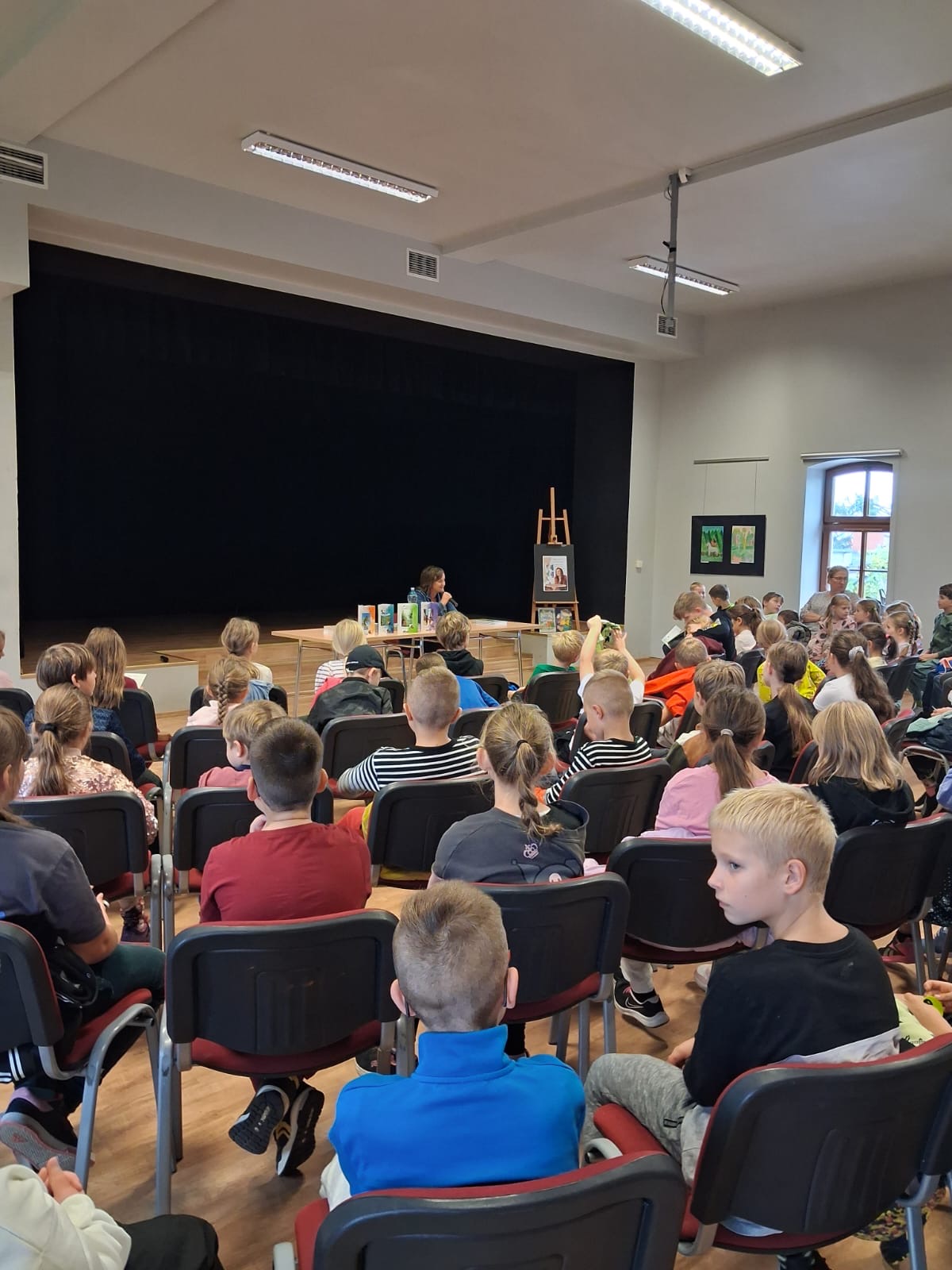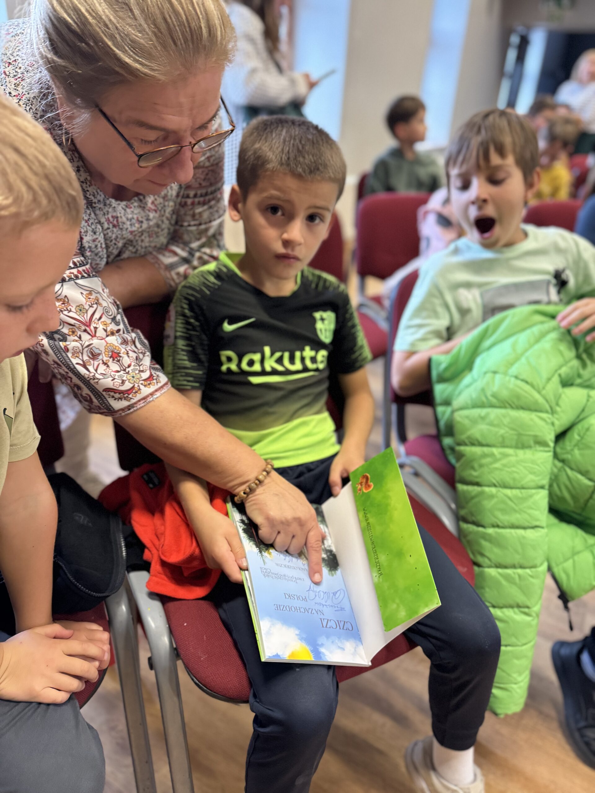 W piątek uczniowie klas 2a, 2d, 4b i 4c wzięli udział w wyjątkowym spotkaniu autorskim z panią Ewą Kołodziejczyk – autorką książek dla dzieci. W ciepłej i inspirującej atmosferze Biblioteki w Świętej Katarzynie uczniowie mieli okazję poznać kulisy powstawania książek oraz posłuchać o przygodach wyjątkowej jaszczurki o imieniu Cziczi – bohaterki jednej z opowieści autorki. Spotkanie było nie tylko okazją do rozmowy o literaturze, ale także do rozwijania wyobraźni i miłości do czytania.