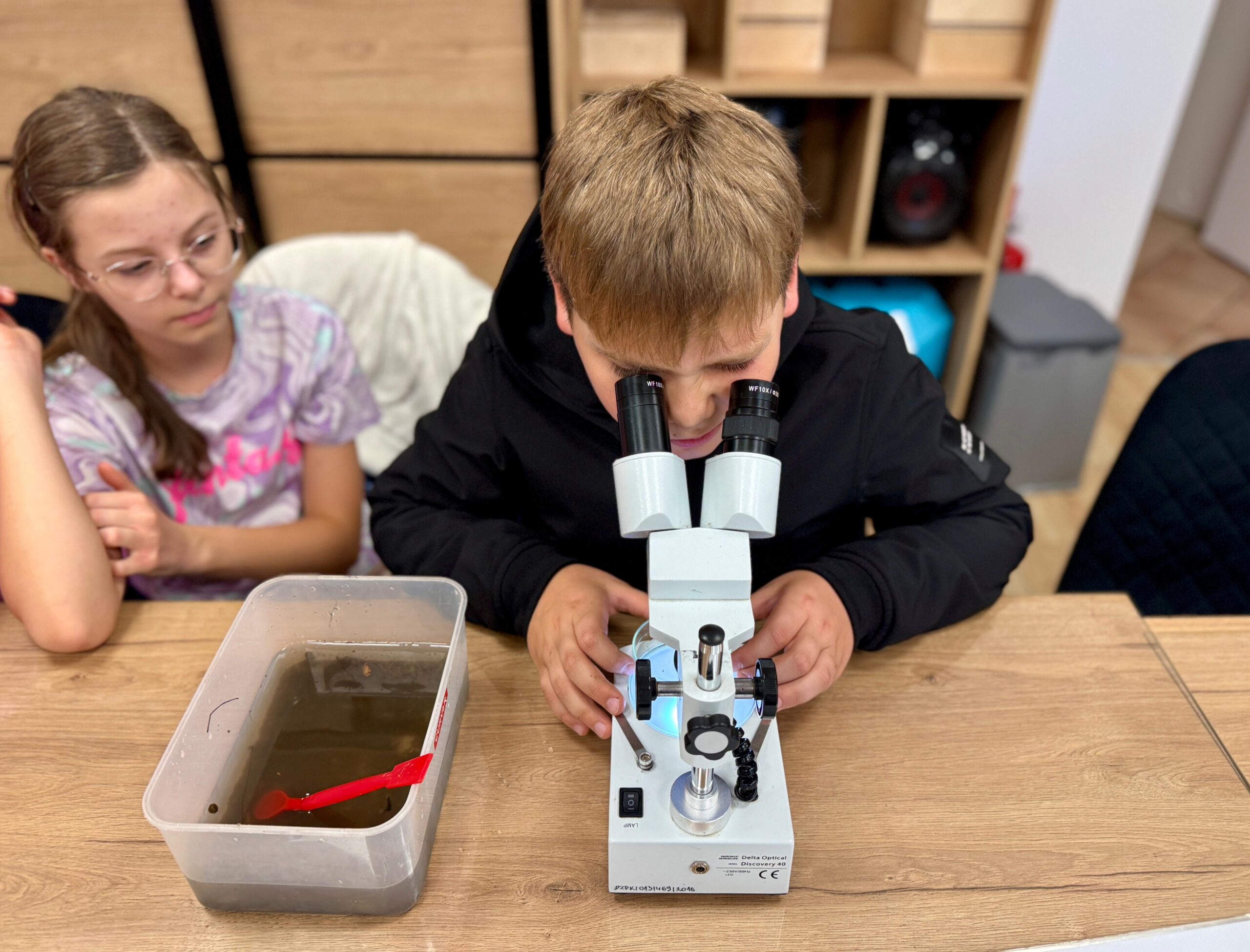 W czwartek 25 września uczniowie klas 6b i 6c wzięli udział w warsztatach terenowych w Centrum Edukacji Ekologicznej i Krajoznawstwa „Salamandra” w Myśliborzu. Największym zainteresowaniem cieszyły się zajęcia „Poznajemy mieszkańców rzeki” polegające na wyławianiu organizmów bezkręgowych z pobliskich zbiorników i cieków wodnych, a następnie rozpoznawanie gatunków i ich obserwacje pod mikroskopem videostereoskopowym.