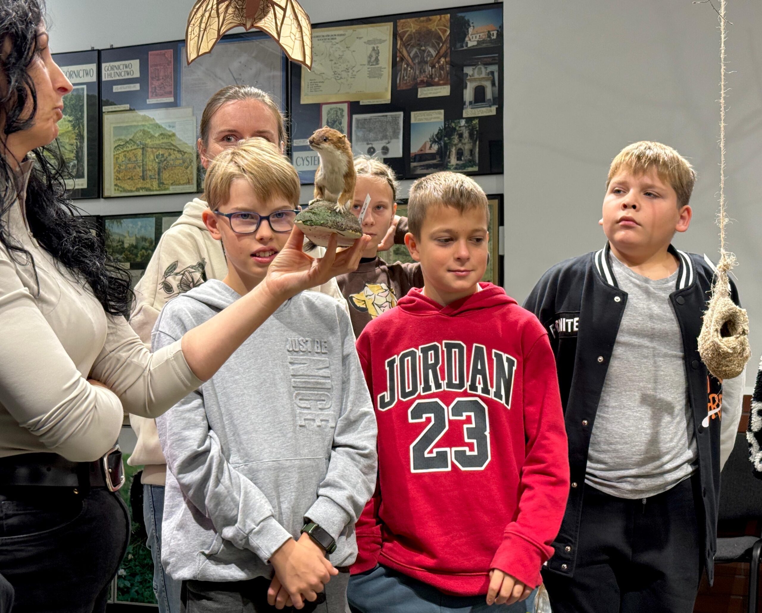 Duże zainteresowanie wzbudziły także eksponaty w muzeum przyrodniczym znajdującym się na terenie ośrodka. Uczniowie poznali różnorodne gatunki zwierząt występujących w okolicy, a także ich środowisko życia i rolę, jaką pełnią w ekosystemie lasu. Następnie wspólnie zastanawiali się nad zagrożeniami, jakie na nie czyhają oraz metodami ochrony tych zwierząt. Zajęcia zakończyły się wycieczką do malowniczego Wąwozu Myśliborskiego, położonego na terenie Parku Krajobrazowego „Chełmy”. Uczniowie pod okiem przewodników uczyli się rozpoznawać różne gatunki drzew oraz obliczać ich wiek. Zajęcia przeprowadzone w jesiennej aurze bardzo się naszym uczniom podobały. Z pewnością wrócą tu jeszcze nie raz.