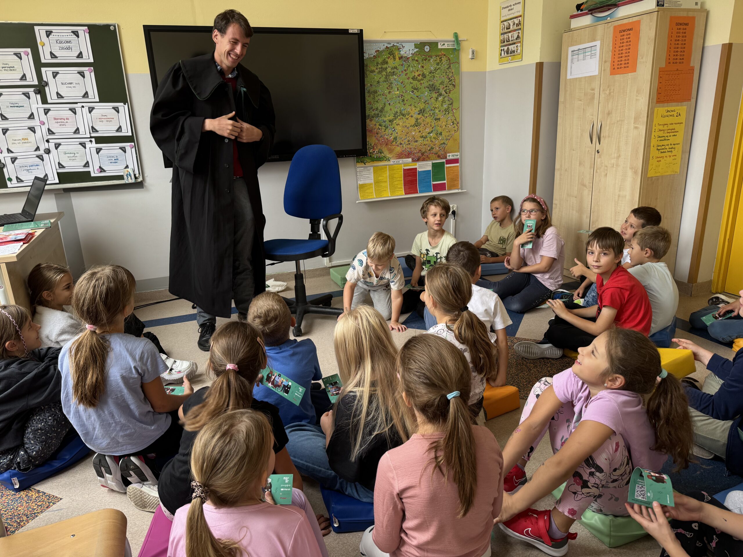 18 i 19 września uczniowie klas pierwszych i drugich mieli wyjątkową okazję spotkać się z prawdziwym adwokatem! Wspólnie wysłuchaliśmy fragmentu książki „Leśne sprawy aplikantów adwokackich, czyli hejt w internecie, tajemnicza nagroda i krecia robota pod wielką lipą”. Było ciekawie, momentami zabawnie, ale też bardzo pouczająco.