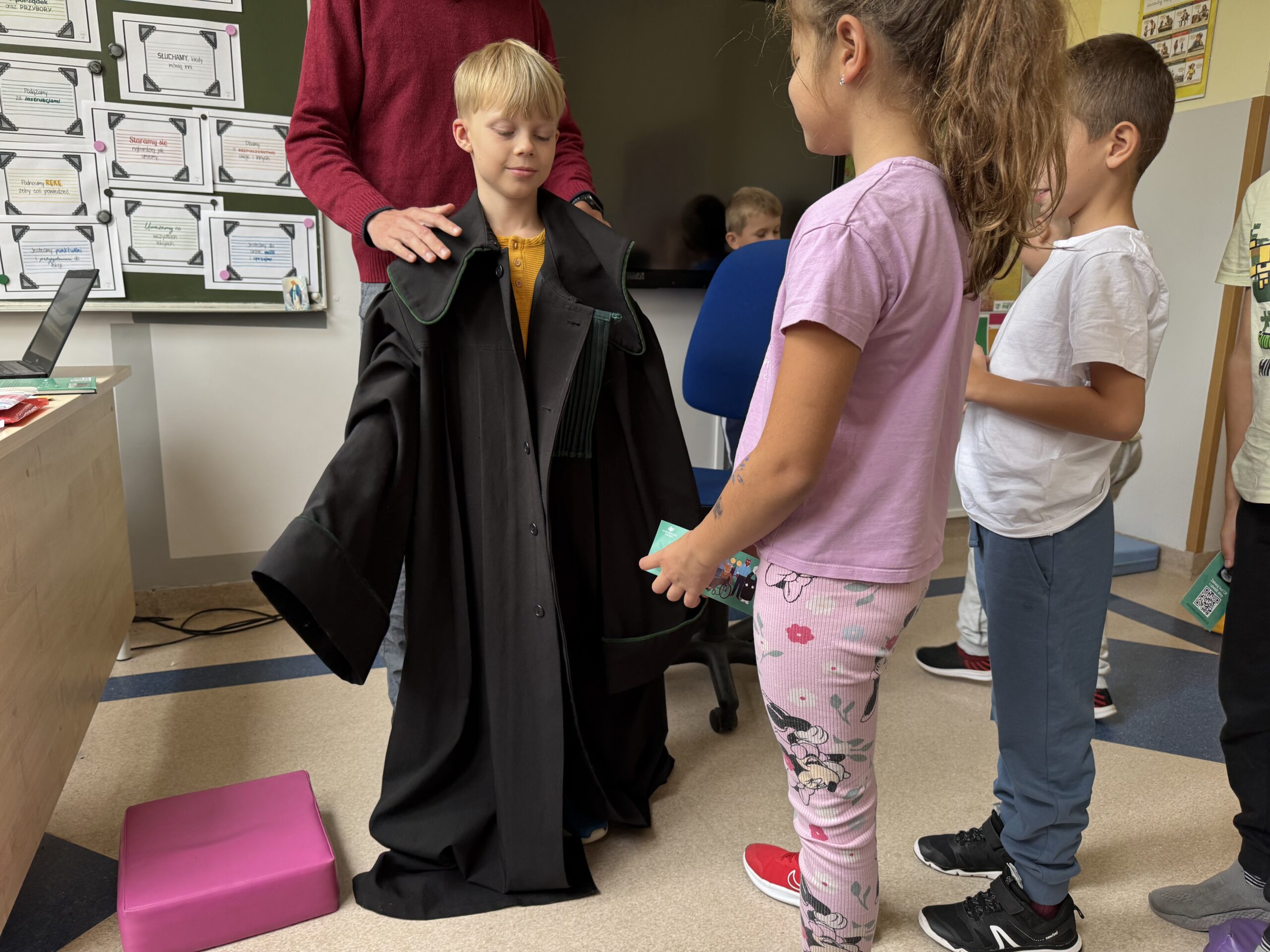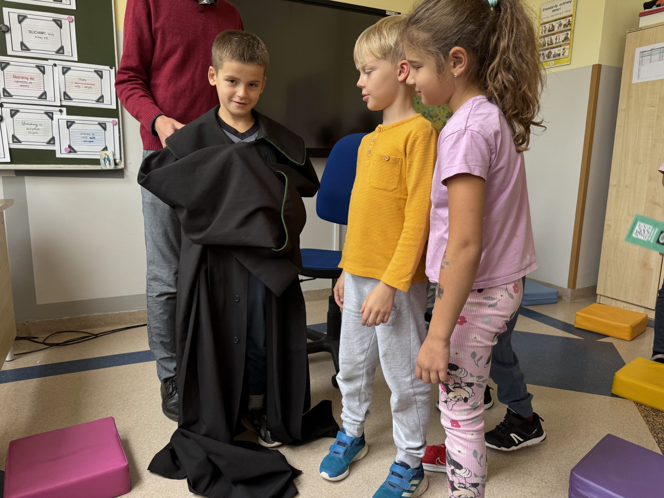 Dowiedzieliśmy się, czym zajmuje się adwokat, gdzie pracuje i jak może pomagać innym. Największą atrakcją było przymierzanie togi. Niektórzy z nas poczuli się jak na lekcji obrony przed czarną magią!