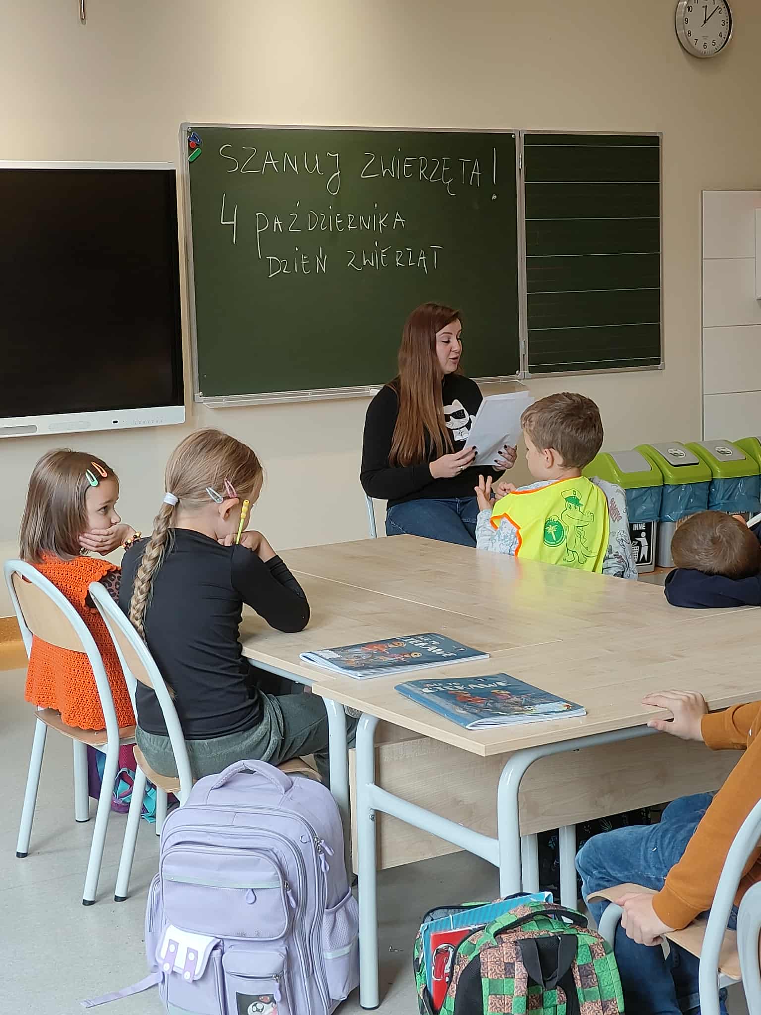 Dodatkowo, w klasach pierwszych pedagog specjalny przeprowadził zajęcia pt. „Szanuj zwierzęta”. Celem zajęć było uświadomienie uczniom, jak bardzo ważny jest szacunek do innych – nie tylko do ludzi, ale także do zwierząt.