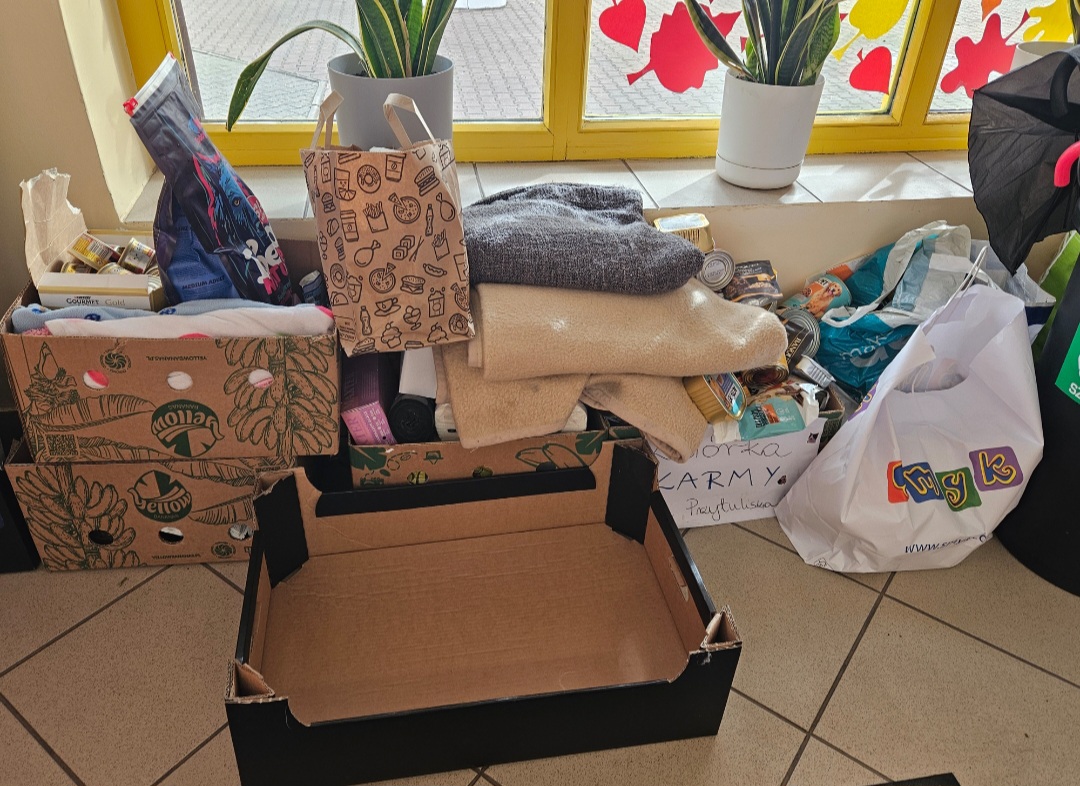 Z okazji Światowego Dnia Zwierząt, w naszej szkole prowadzona jest zbiórka karmy i rzeczy dla zwierzaków. Pożywienie trafi do Przytuliska w Oławie.