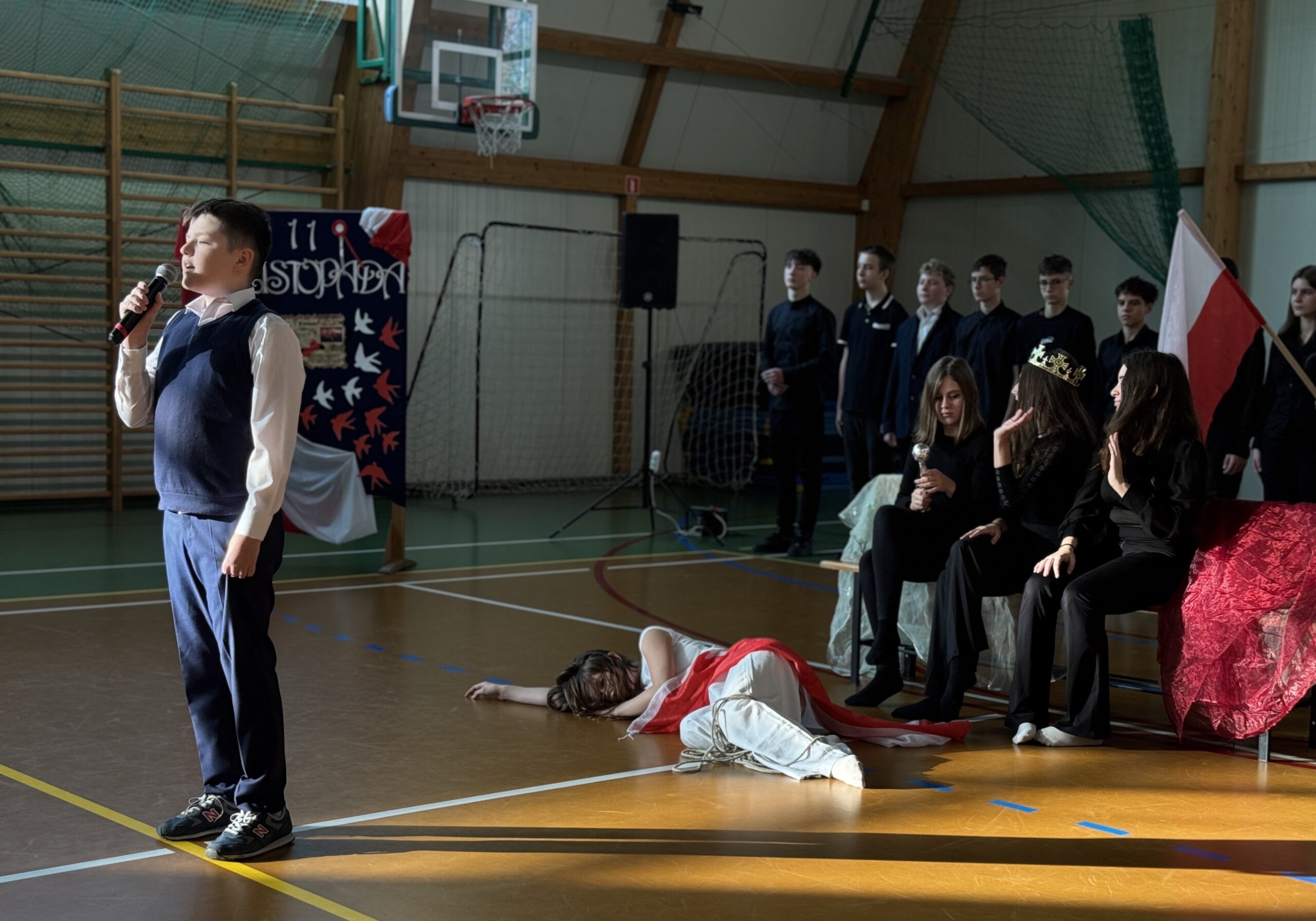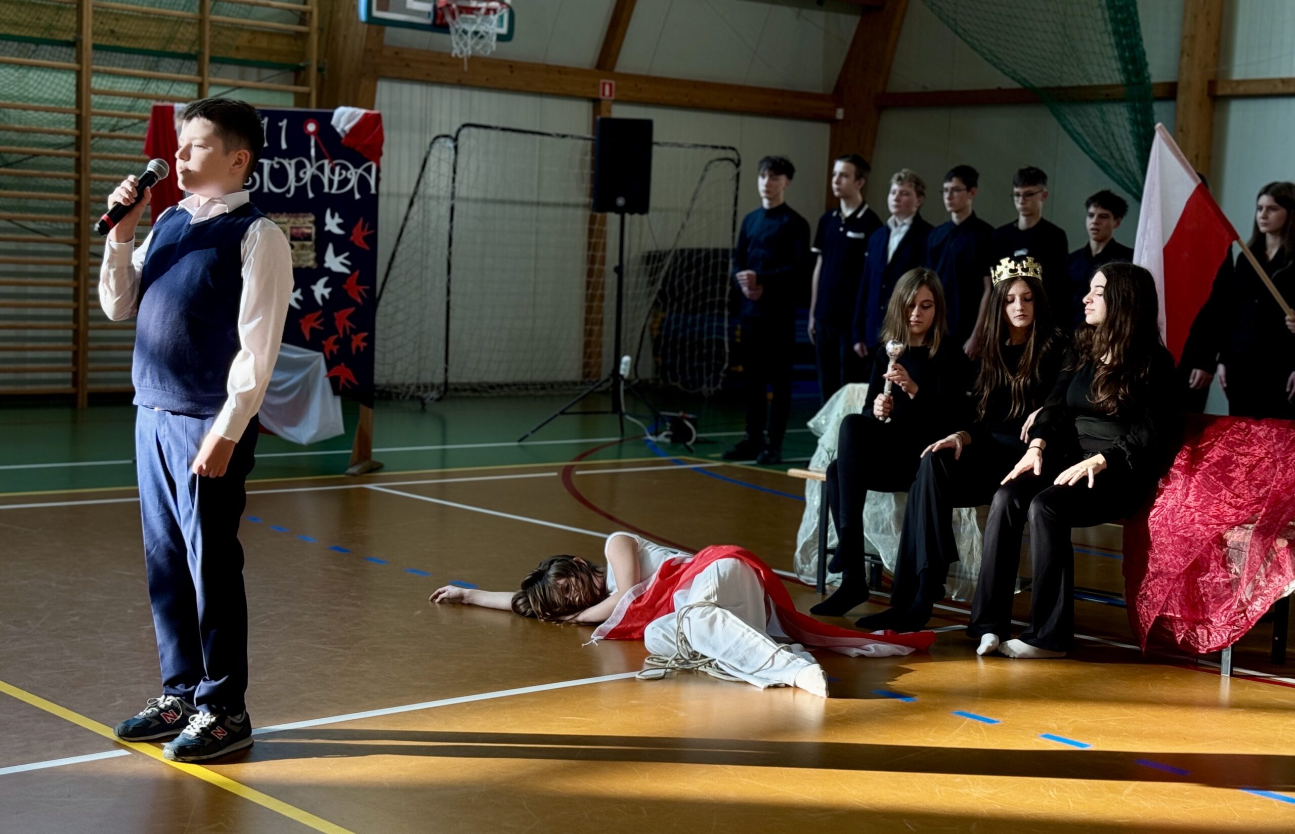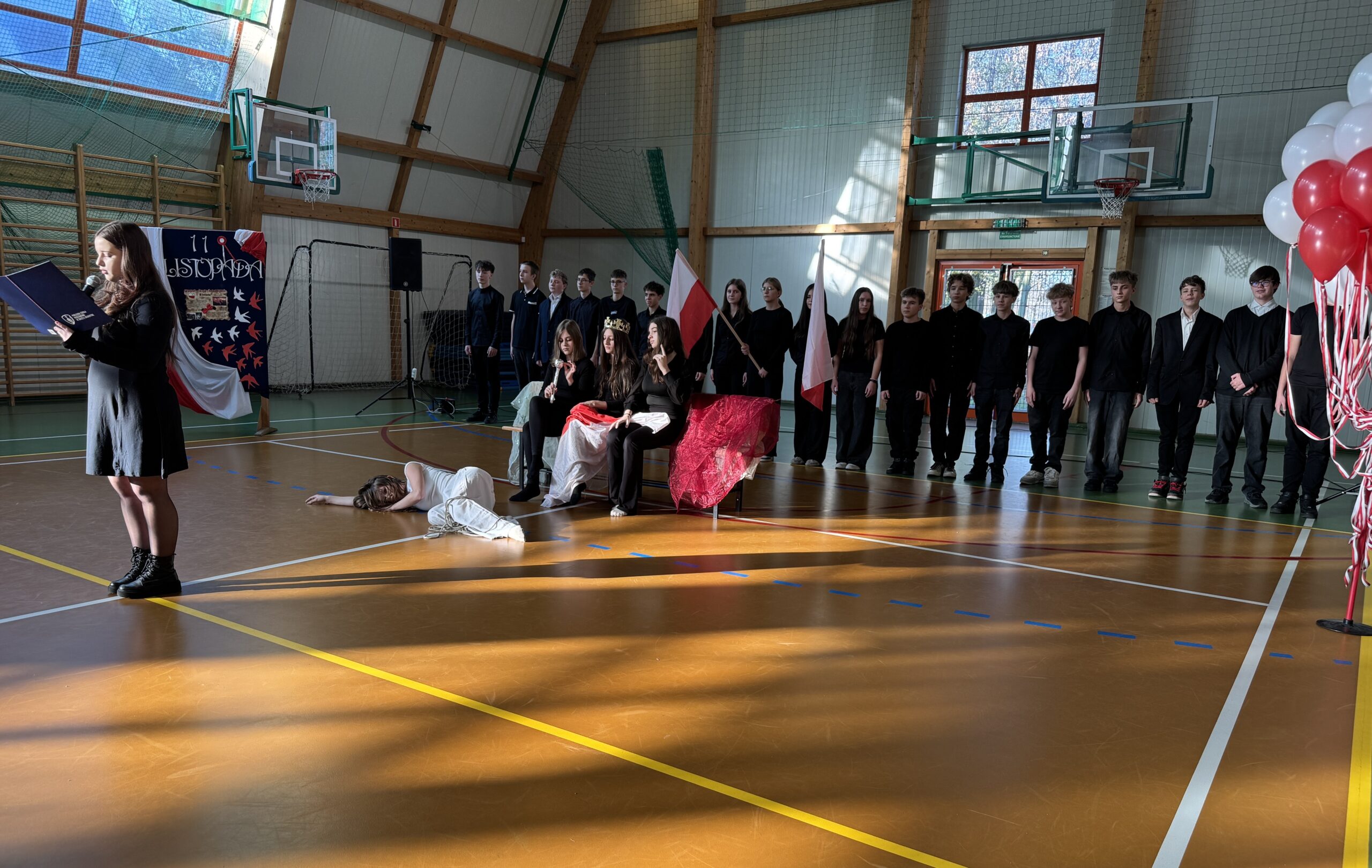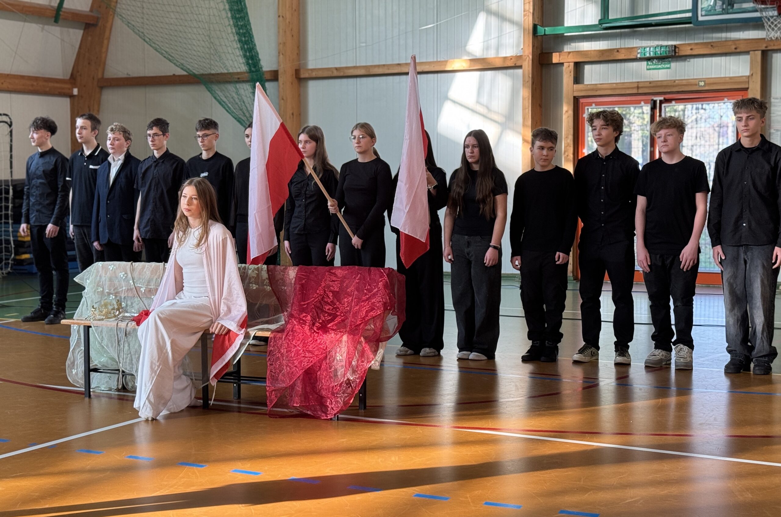 W piątek 7.11 odbyła się w naszej szkole uroczysta akademia z okazji Narodowego Święta Niepodległości. Chcieliśmy w ten sposób upamiętnić to ważne dla naszego państwa wydarzenie, składając hołd wszystkim bohaterom, dzięki którym mamy wolność. Występy uczniów pozwoliły przeżyć nam chwile wzruszenia, zwłaszcza podczas tańców wolnej Polski, Jej zniewolenia przez zaborców i w scenie oswobodzenia naszego kraju spod panowania tych, którzy pilnowali „głazu nad grobem Polski„.