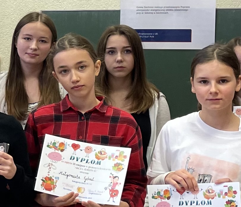 18 listopada w Siechnicach odbył się gminny konkurs o zdrowiu z udziałem naszych uczniów. Konkurs miał charakter interdyscyplinarny – łączył elementy wiedzy o zdrowiu, zdrowym stylu życia, profilaktyce oraz aktywności fizycznej.