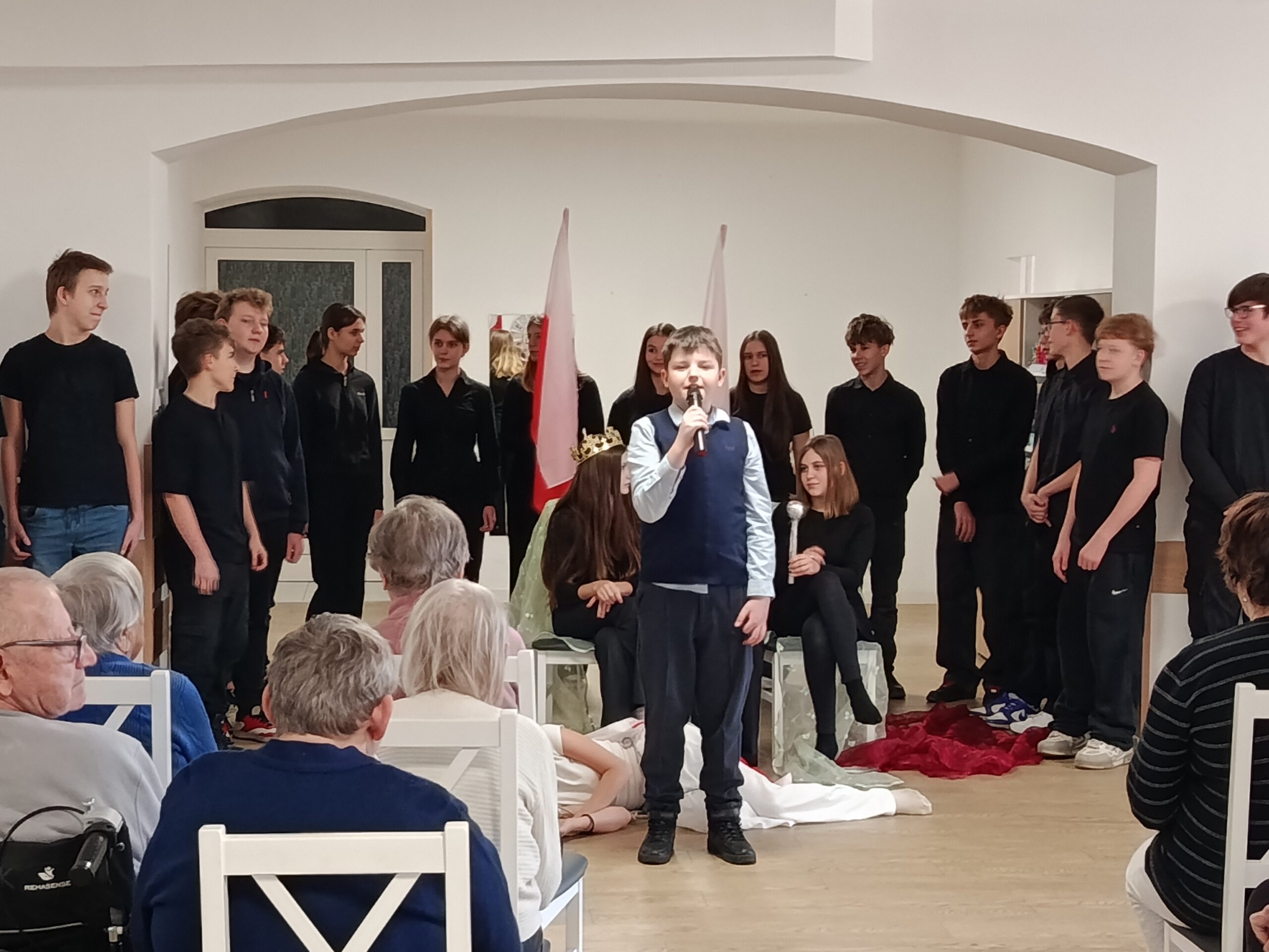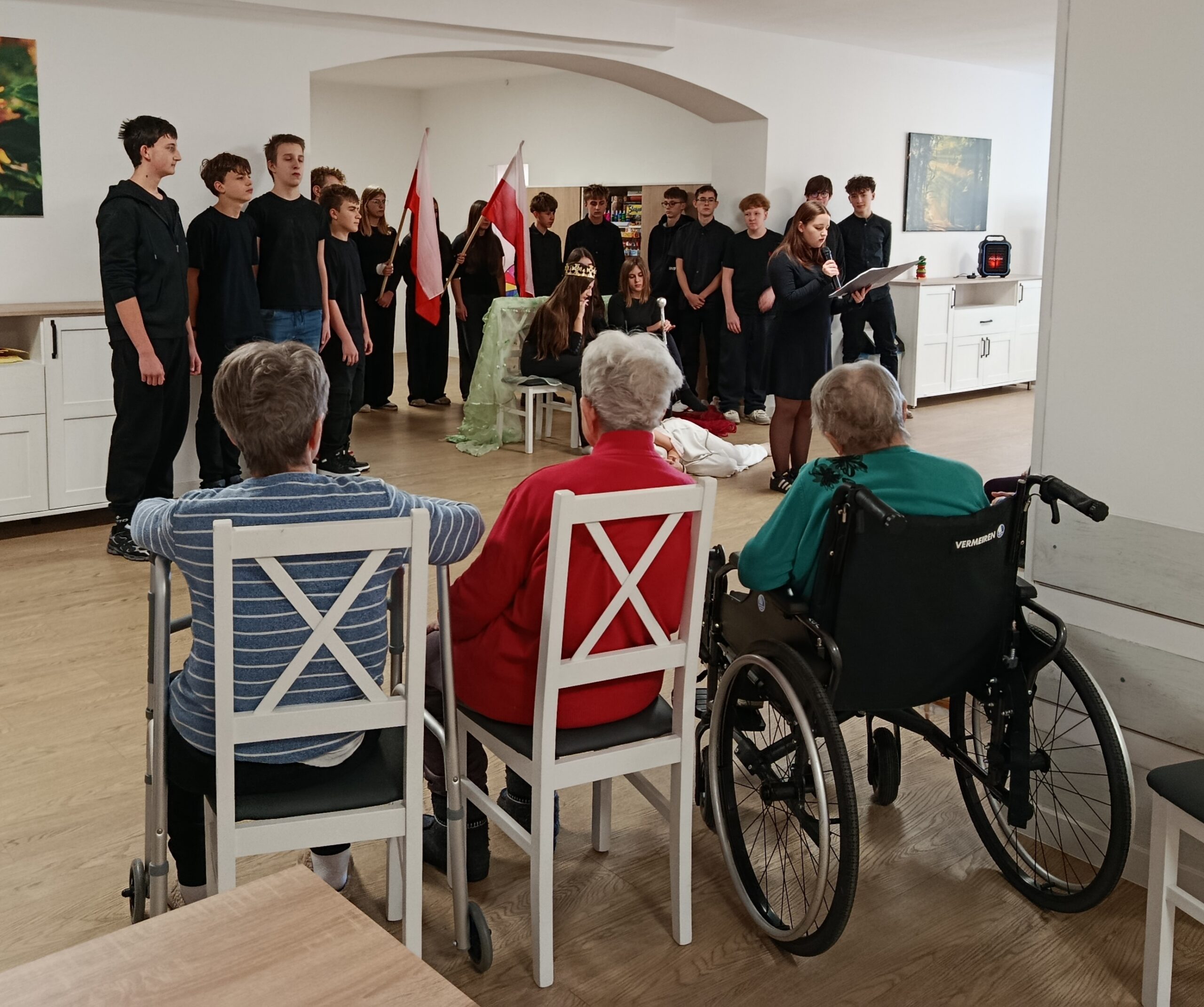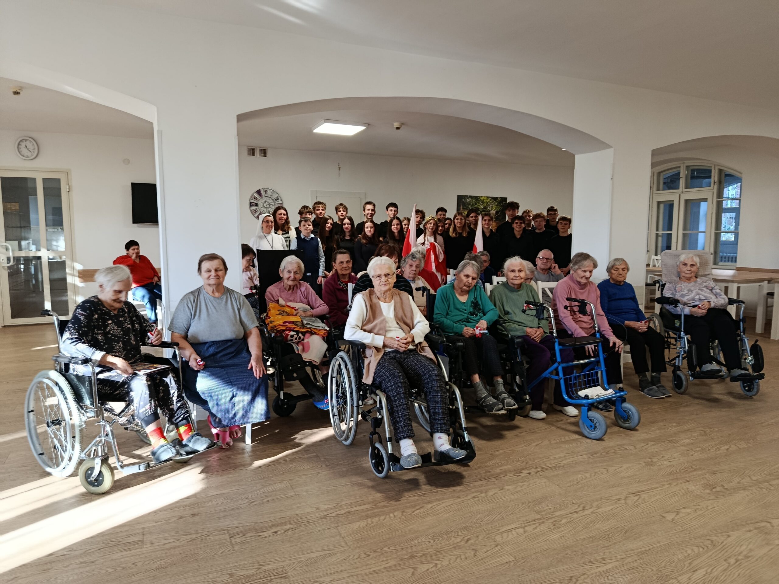 19 listopada grupa naszych uczniów wraz z P. Małgorzatą Grabowską oraz P. Alicją Dubaj udała się do ZOL-u w Świętej Katarzynie, aby wspólnie świętować kolejną rocznicę odzyskania niepodległości przez naszą Ojczyznę. Program artystyczny wykonany przez uczniów poruszył serca podopiecznych. Na koniec wręczyliśmy drobne upominki – patriotyczne kotyliony i zawieszki wykonane przez uczniów z klasy 8c.