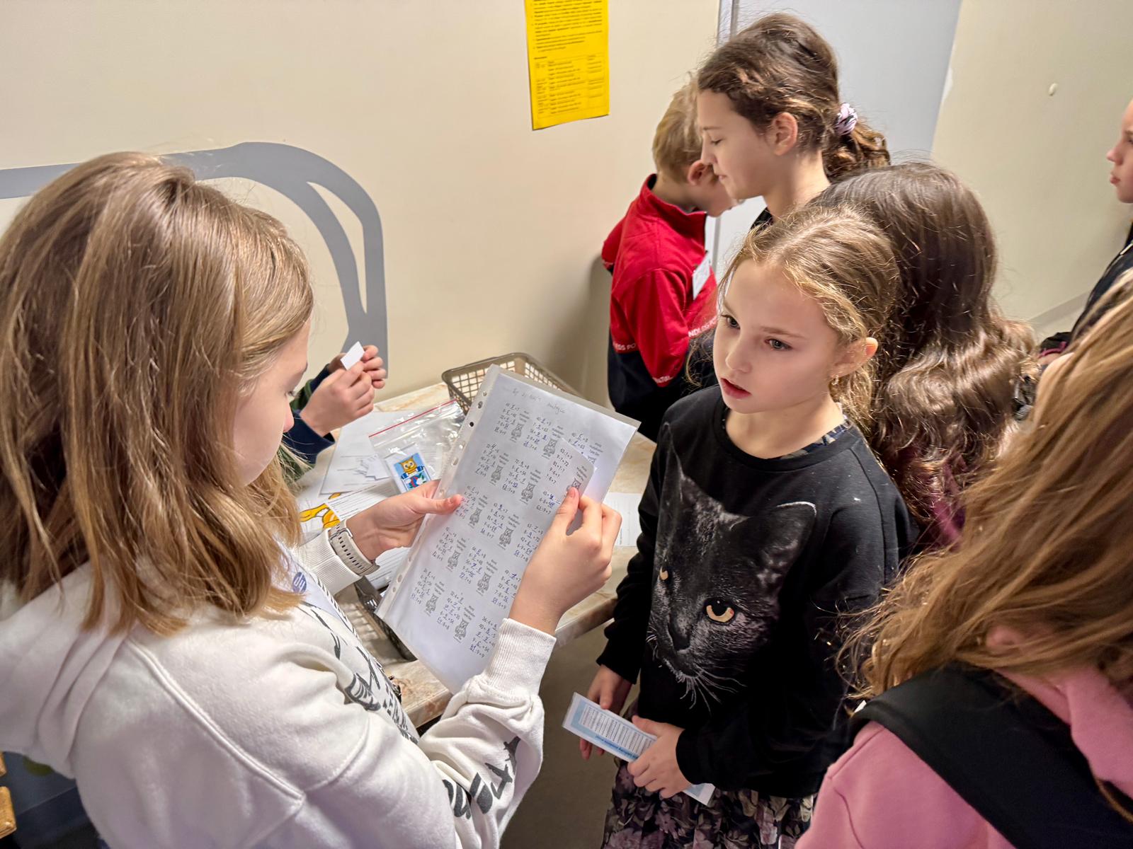 Na przerwach po 1, 2 i 4 lekcji komisje egzaminacyjne (13 zespołów), w skład których weszli uczniowie klas 4c, 5a, 6a, 6b i 6c mieli sporo pracy, pojawiły się nawet kolejki chętnych uczniów do zdawania egzaminów. Wcześniej zespoły przygotowały losy z zadaniami ze strony https://wmtday.org/pl.