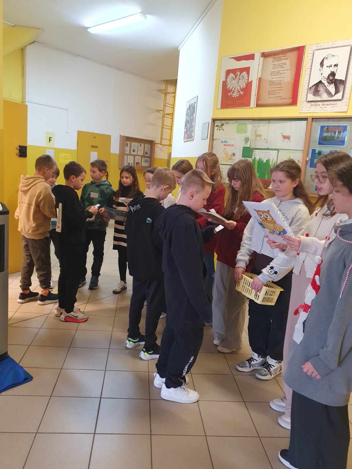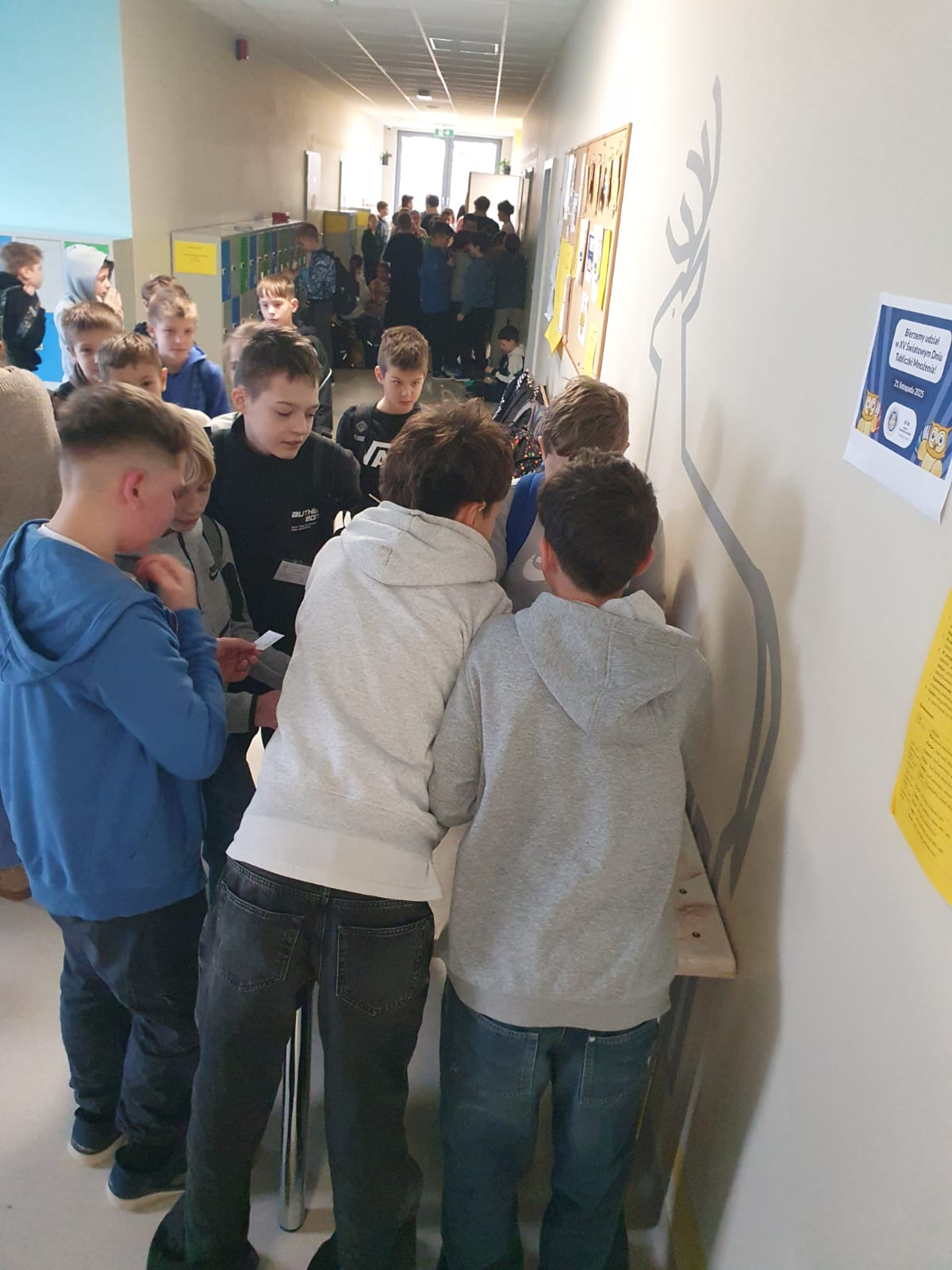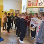 Od poniedziałku na korytarzach pojawiły się plakaty związane z tabliczką mnożenia, a w dniu finału już o godz. 7:30 swoją pracę rozpoczęły pierwsze patrole egzaminacyjne z kl. 6a – przed wejściem do szkoły, z klasy 4c – na parterze oraz z klasy 4c – na pierwszym piętrze.