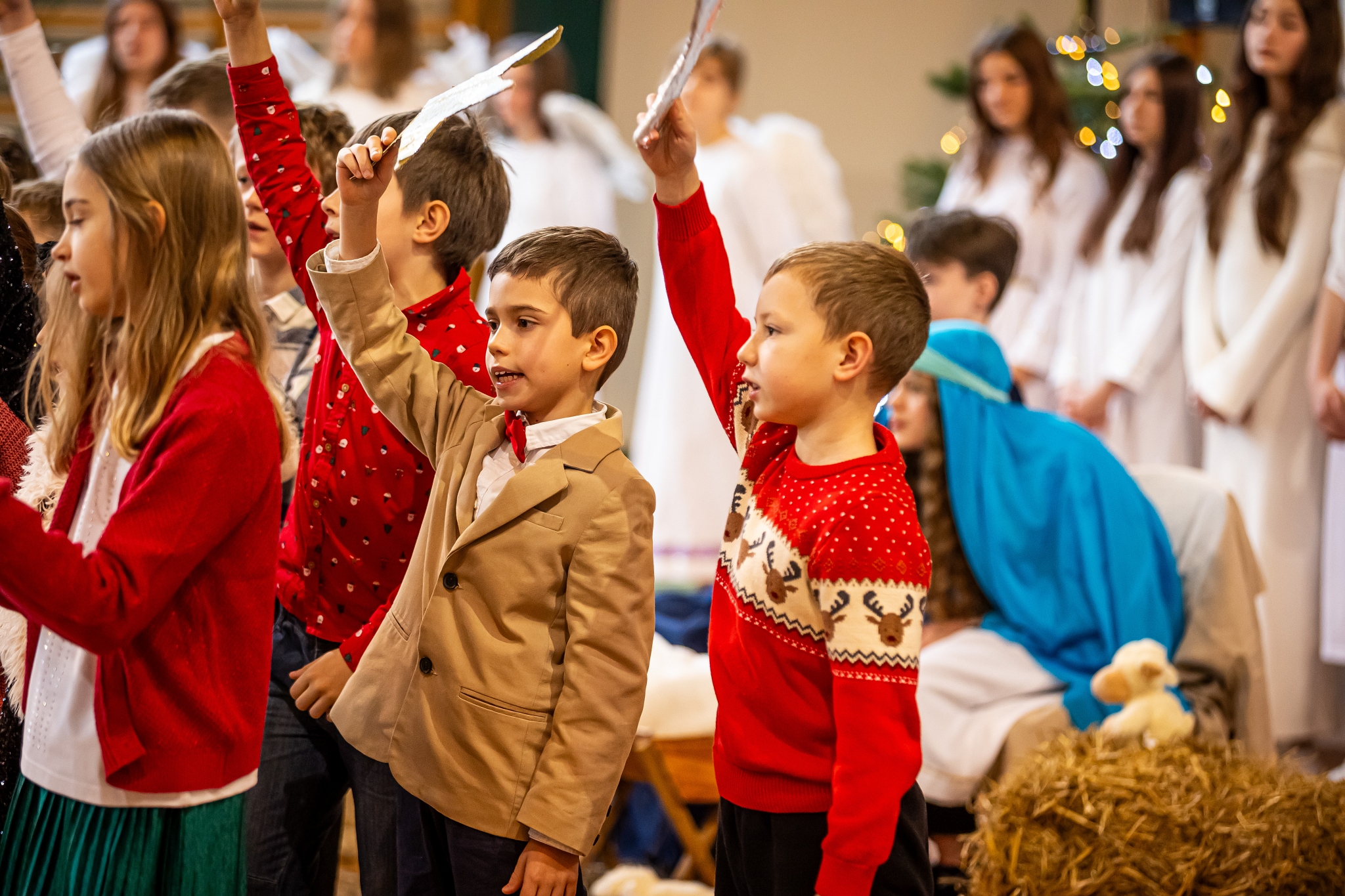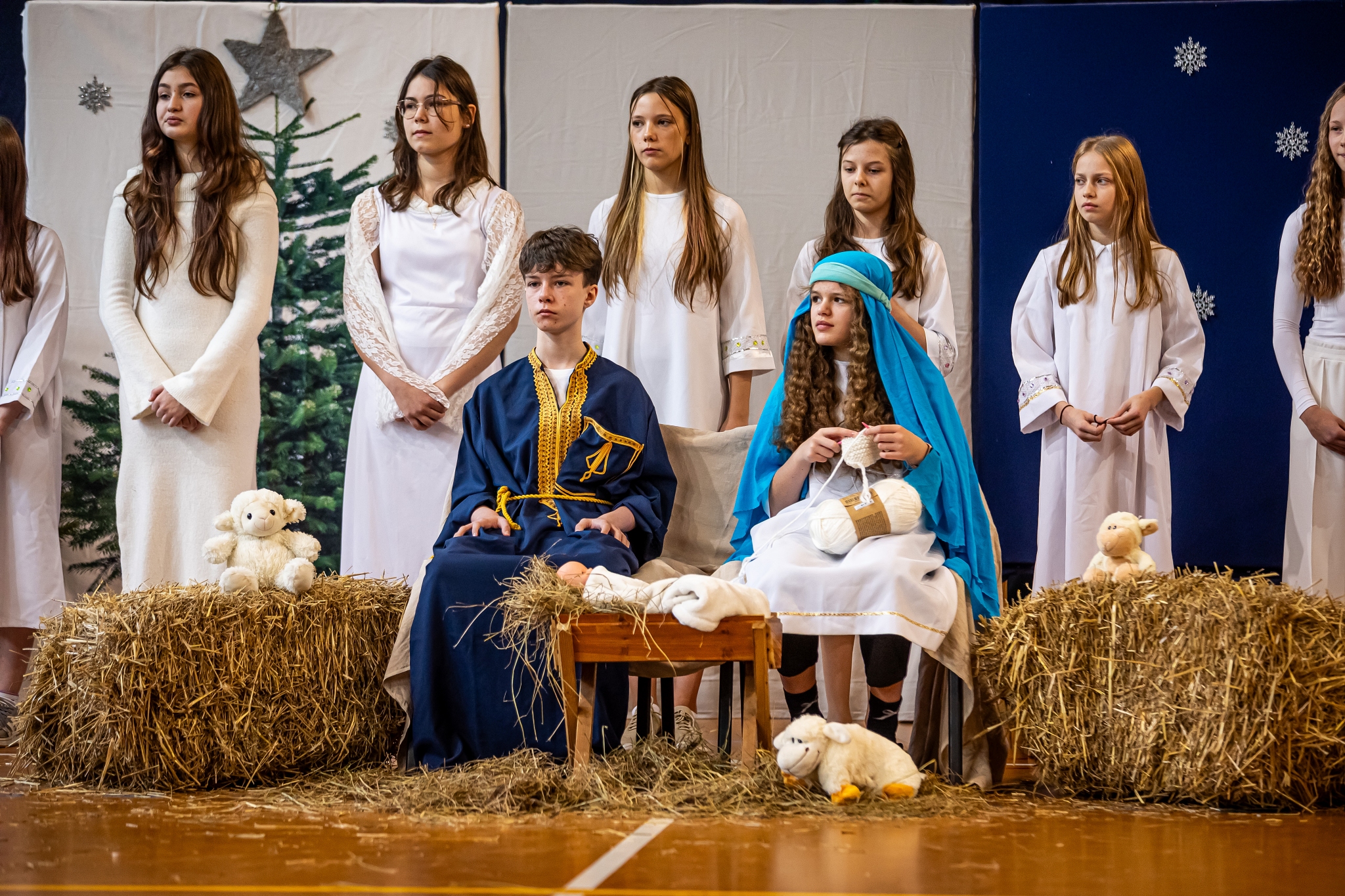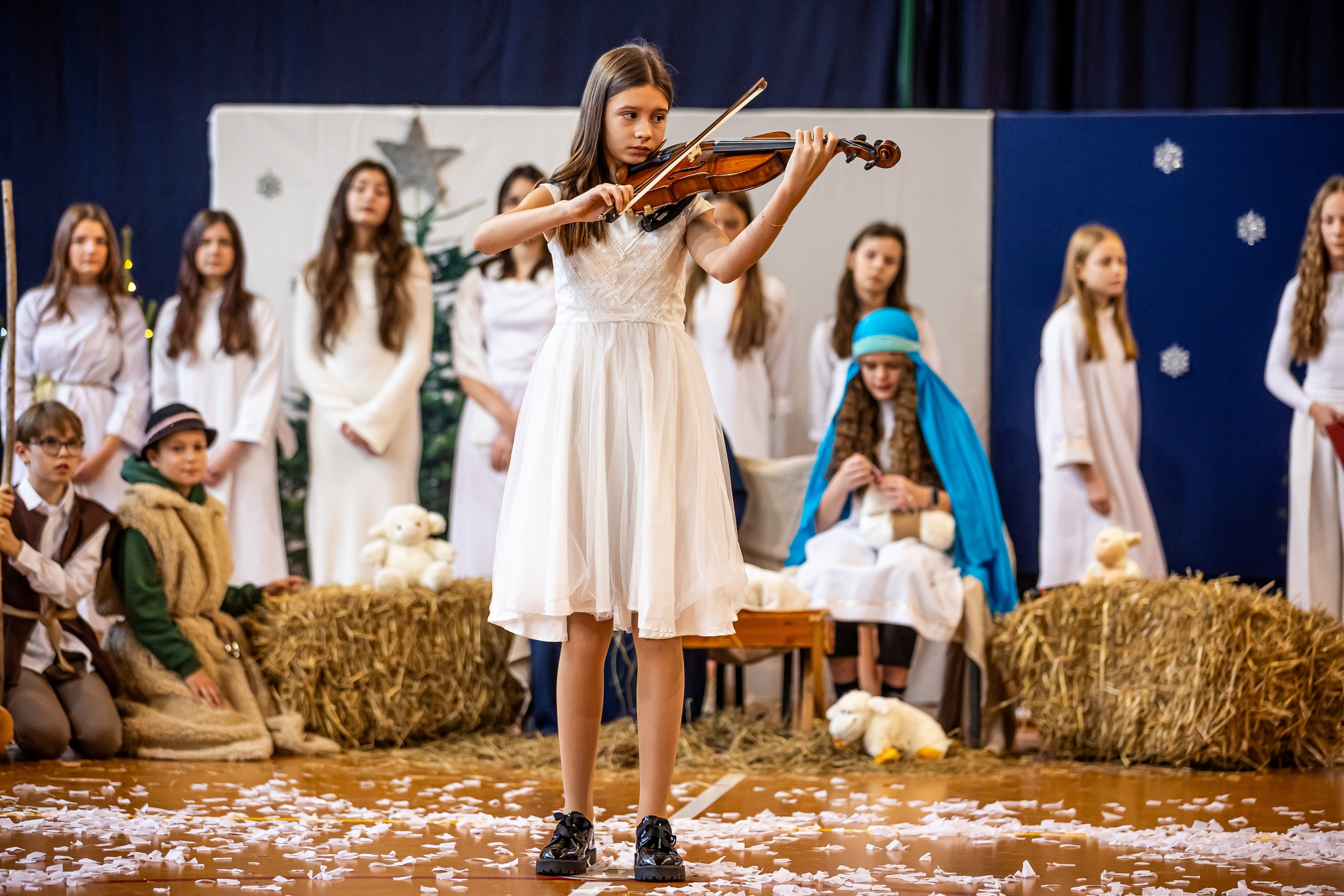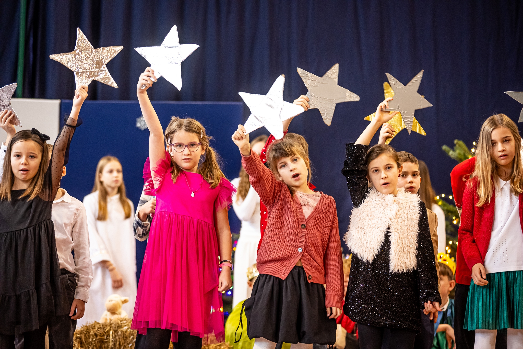 Uroczystość składała się z dwóch części. Pierwszą z nich było tradycyjne przedstawienie w którym uczniowie zaprezentowali biblijne sceny narodzin Jezusa. Młodzi aktorzy z dużym zaangażowaniem i wrażliwością oddali sens i przesłanie świąt, a całość dopełniały piękne dekoracje oraz nastrojowa oprawa muzyczna. Druga część wydarzenia miała charakter wspólnego kolędowania.