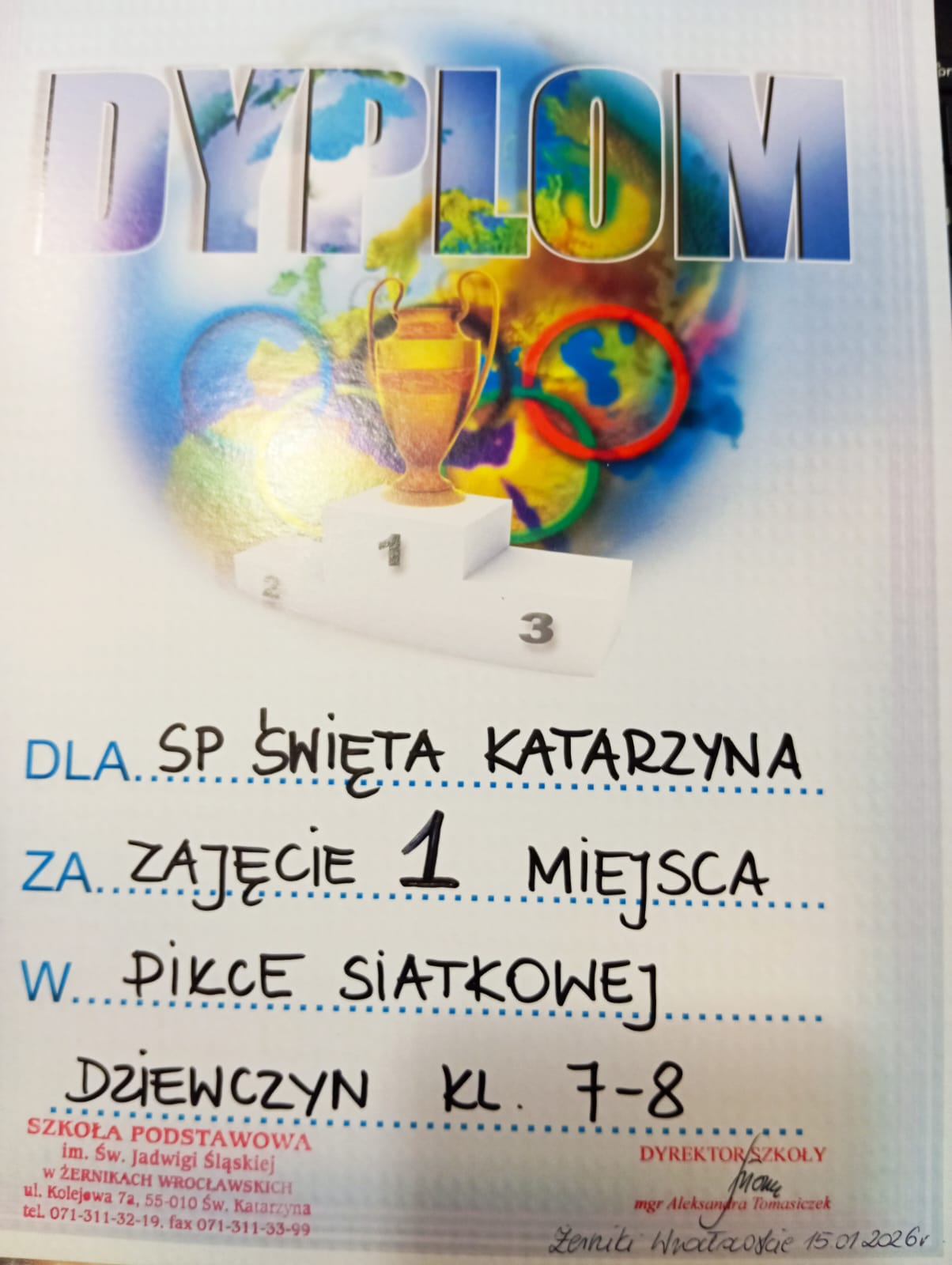 Miło nam poinformować, że uczennice klas 7 i 8 zajęły I miejsce w Gminnych Igrzyskach Młodzieży Szkolnej w Piłce Siatkowej. Dziewczyny wygrały wszystkie mecze. Szkołę reprezentowały uczennice: Oliwia Marczyk, Anna Więcław, Julianna Wronecka, Zuzanna Małecka, Aleksandra Pięta, Helena Tom, Julia Domagała, Martyna Kopańska, Emilia Kwaczyńska, Weronika Łada, Kornelia Smyrak, Hanna Kalinowska, Karolina Korona, Aleksandra Krowińska, Natalia Szreter.