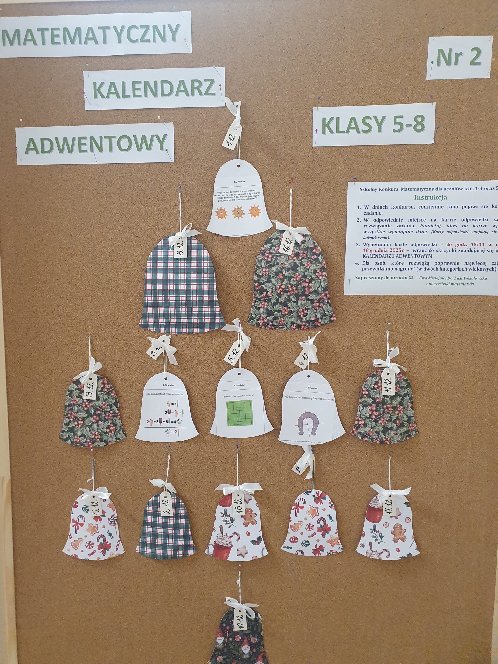 Przez cały grudzień, codziennie rano na tablicach z kalendarzami pojawiały się nowe zadania matematyczne przygotowane przez organizatorów.