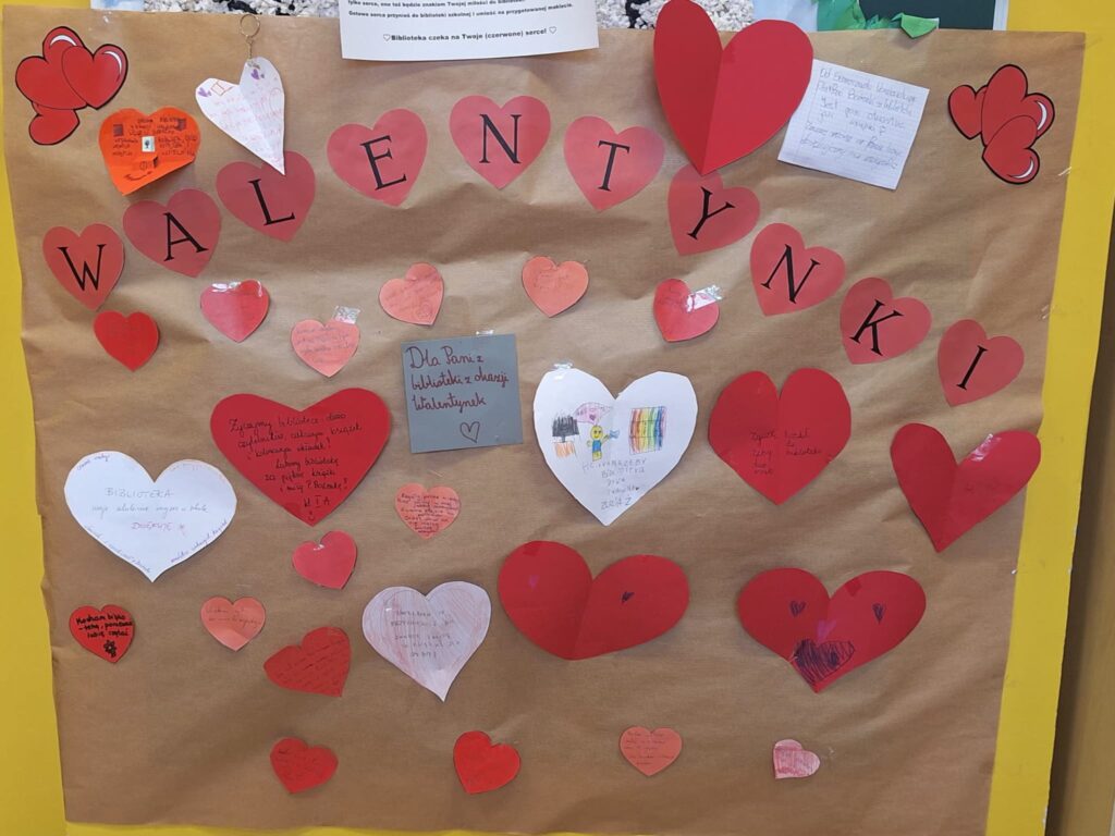 Ilość serduszek mówi sama za siebie tylu uczniów nosi w sercu sympatię do biblioteki!