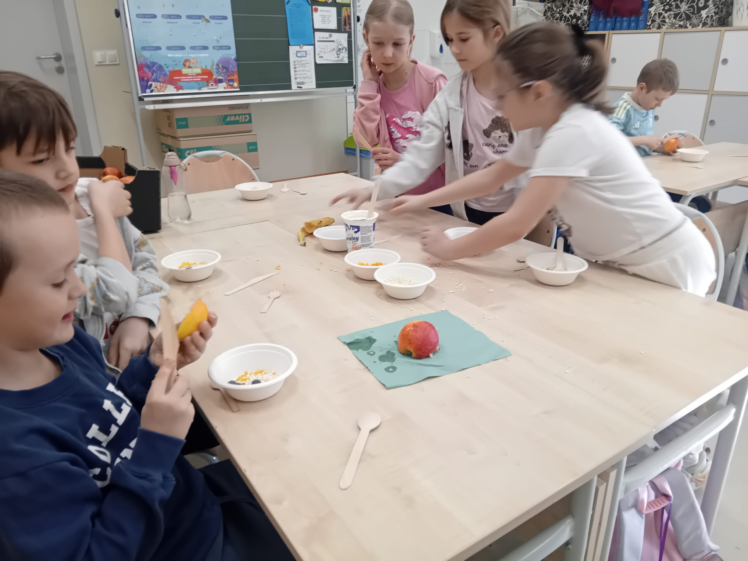 Pani Ewelina Pawełka, mama Franka, przeprowadziła warsztaty, podczas których uczniowie wykonali własne desery bez dodatku cukru.