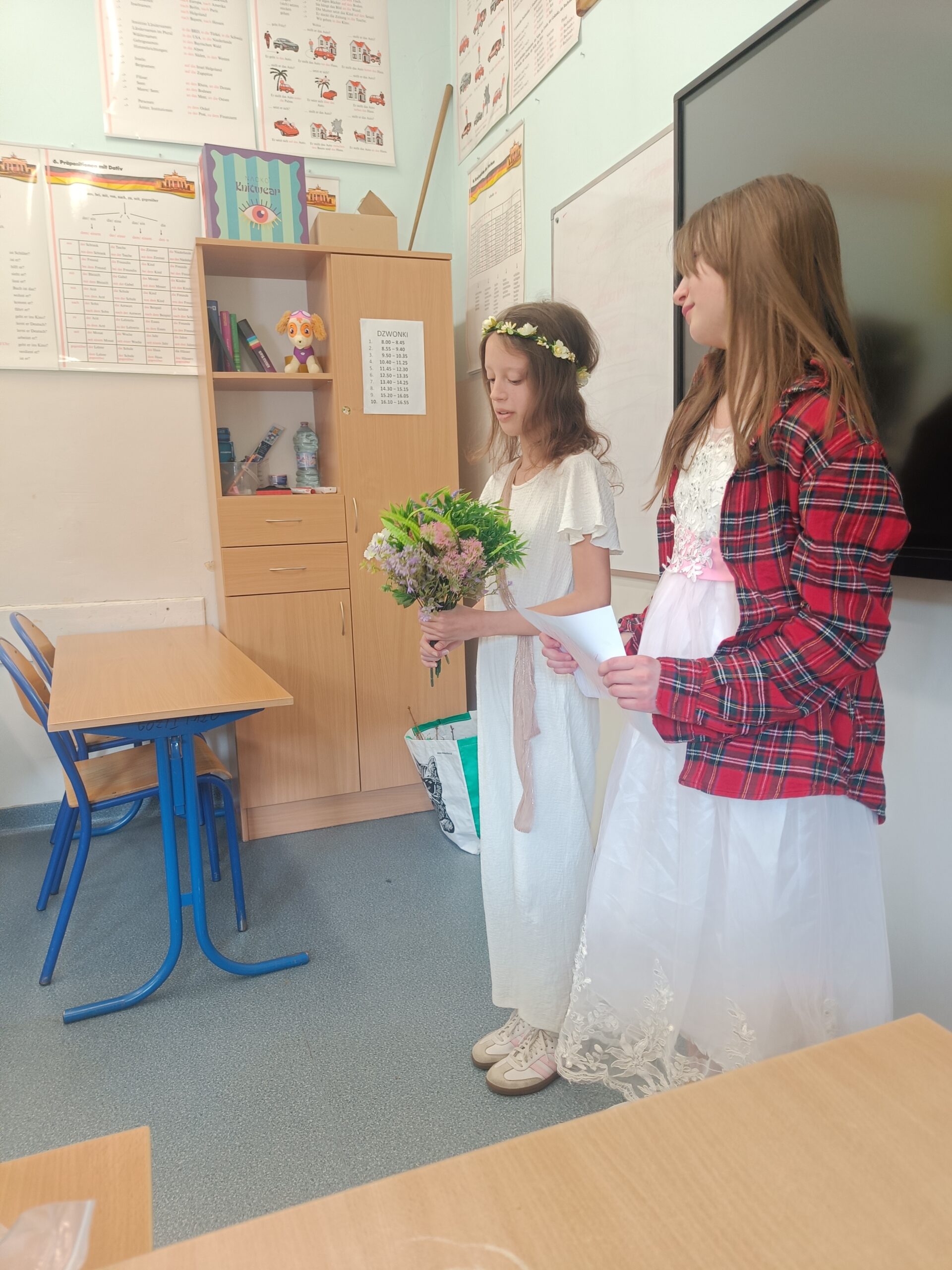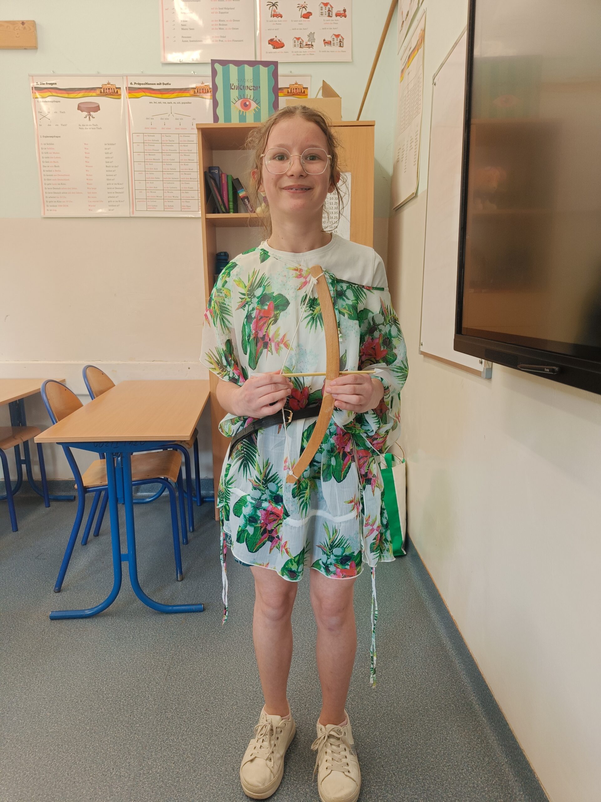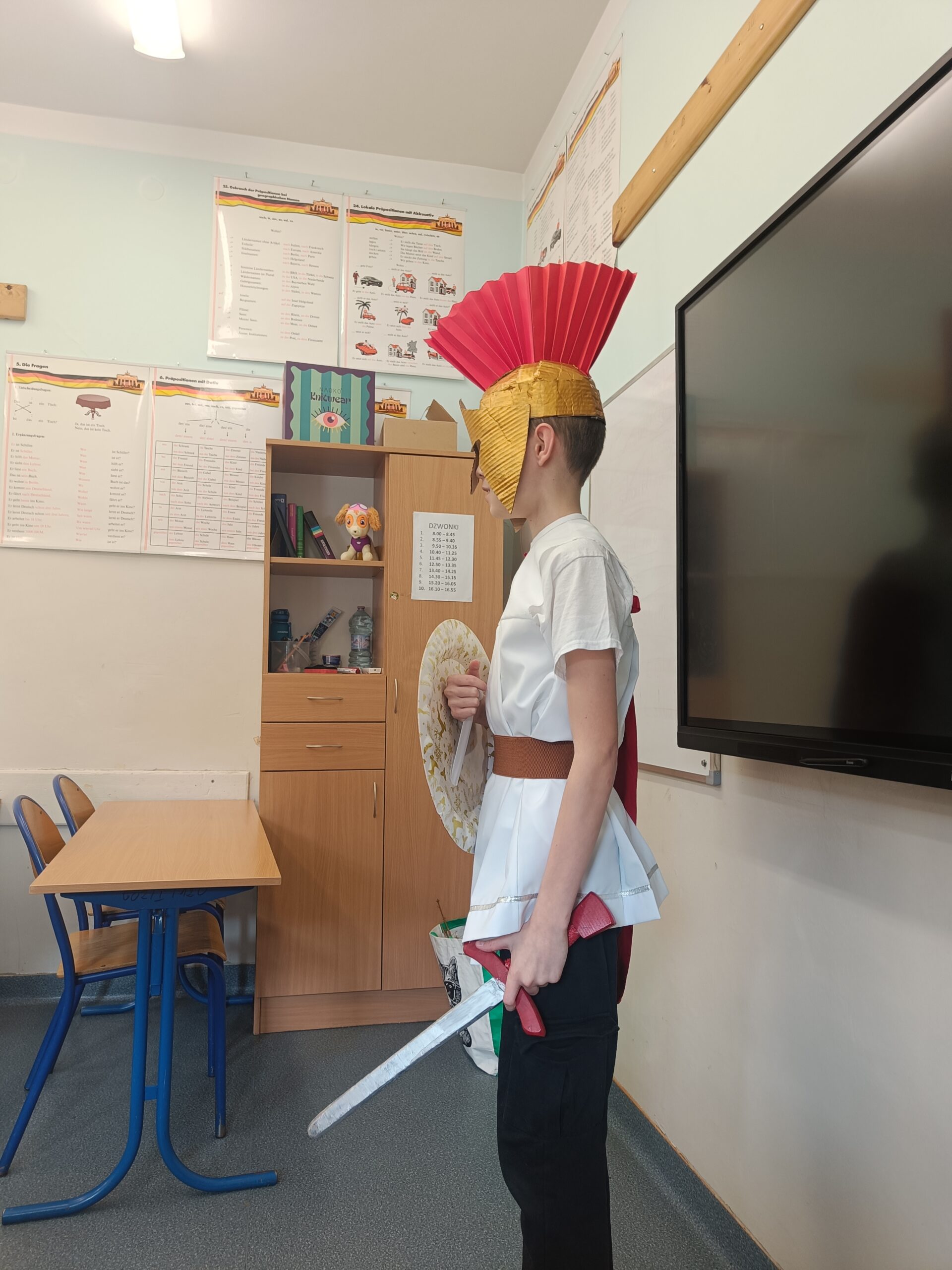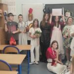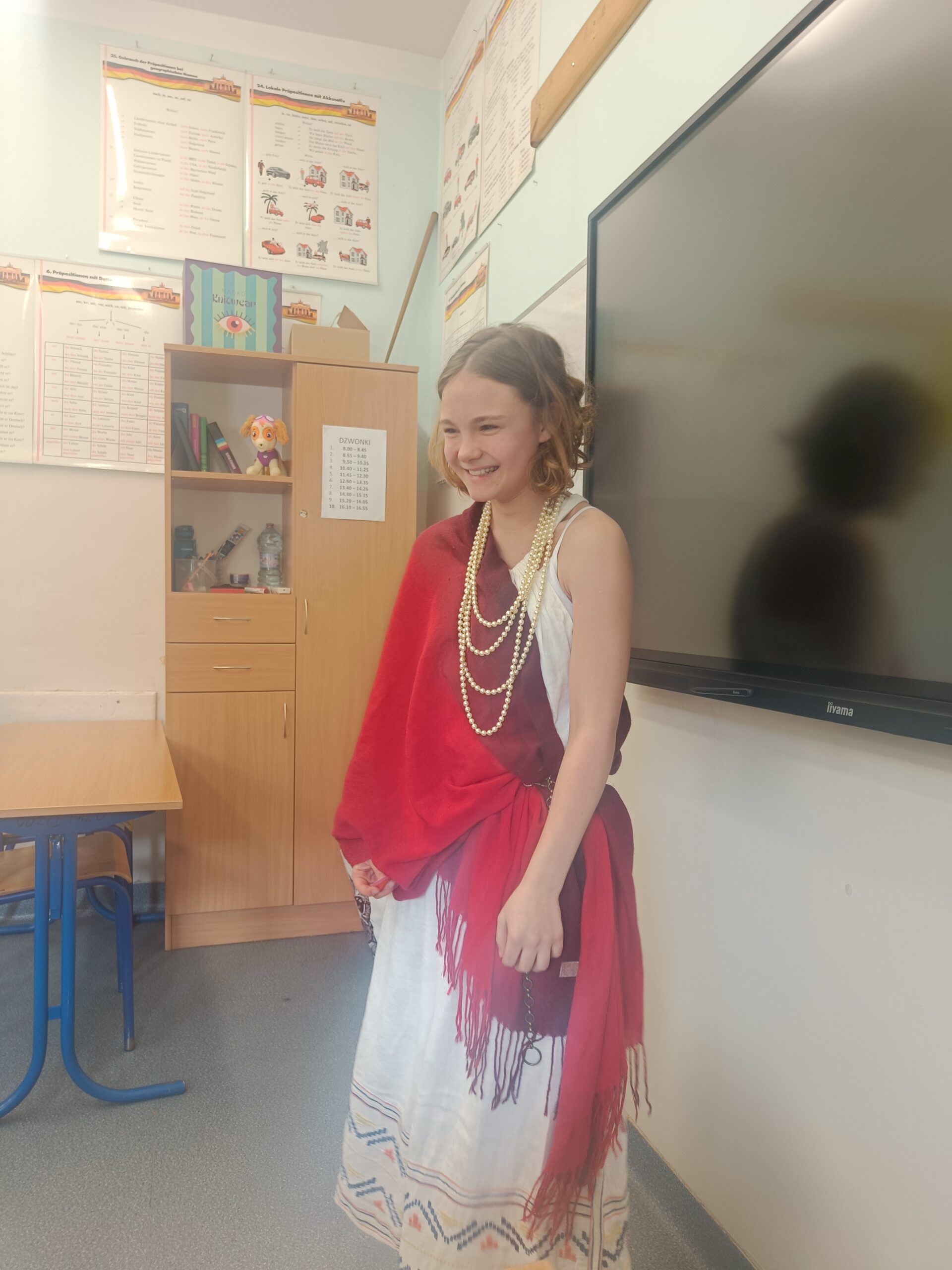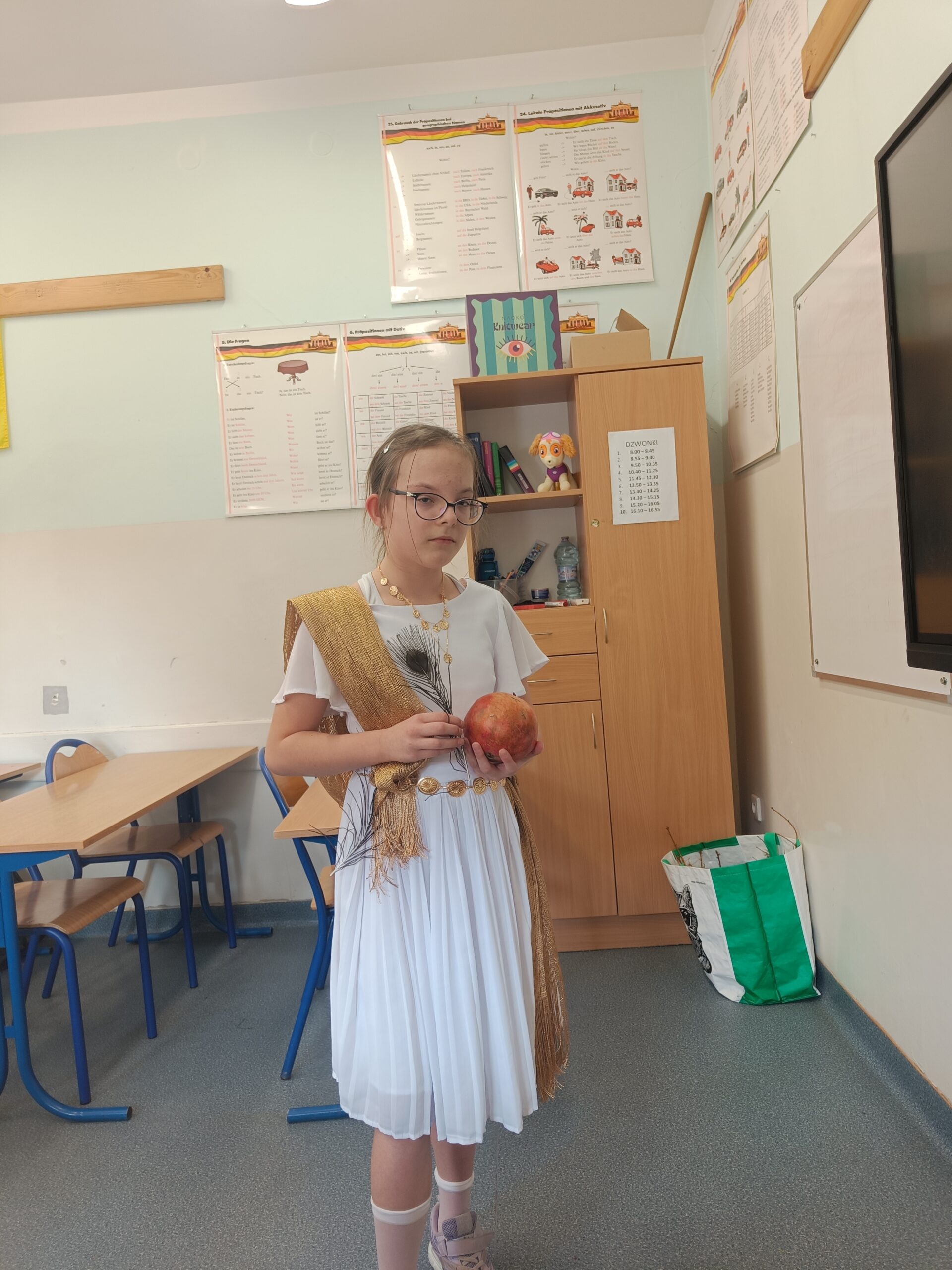 Uczniowie klasy 5c wzięli udział w niezwykłej lekcji języka polskiego poświęconej mitologii greckiej. Tego dnia sala lekcyjna zamieniła się w prawdziwy Olimp – uczniowie wcielili się w role greckich bogów i bogiń, przygotowując stroje oraz charakterystyczne atrybuty swoich postaci.
