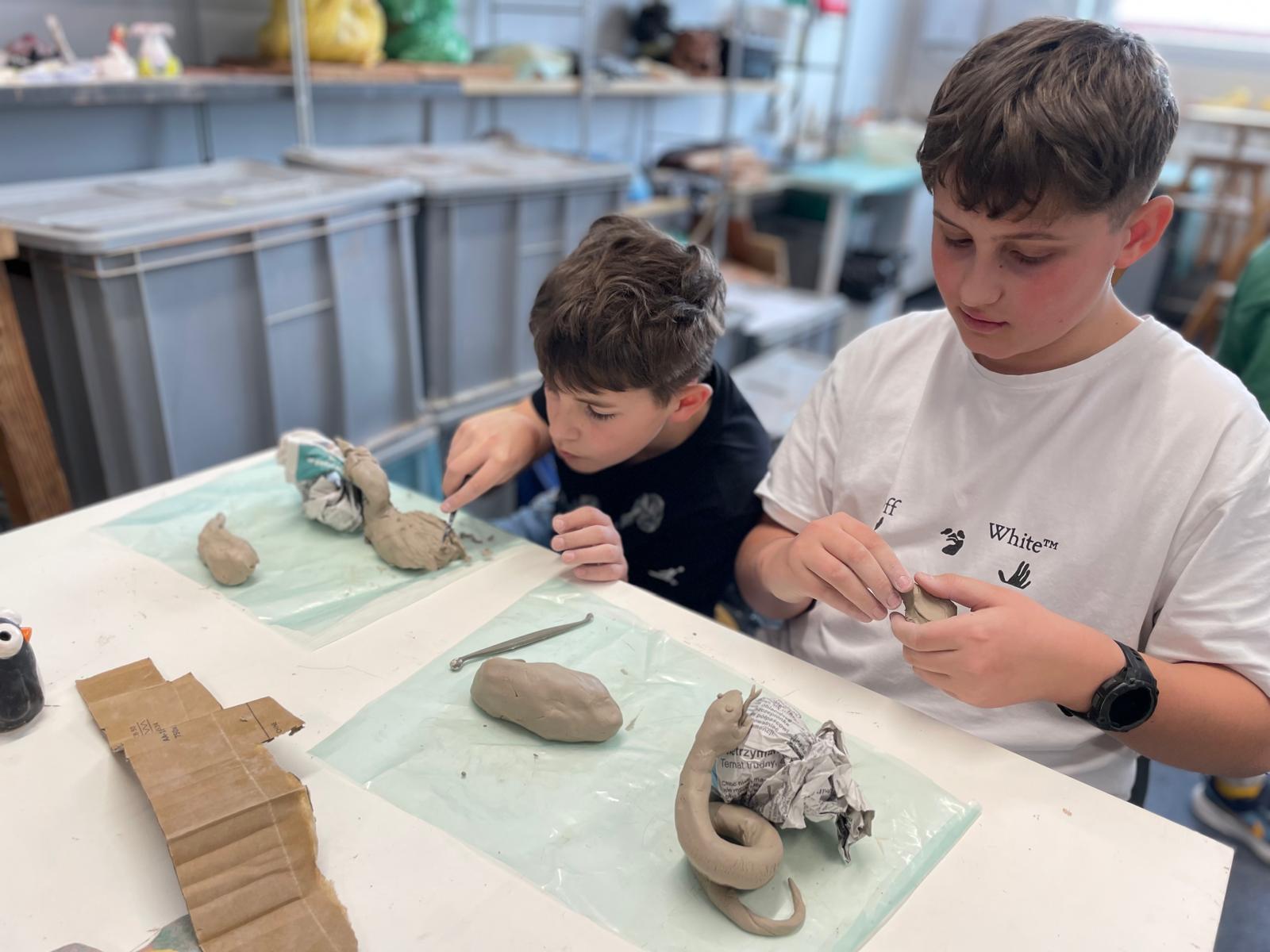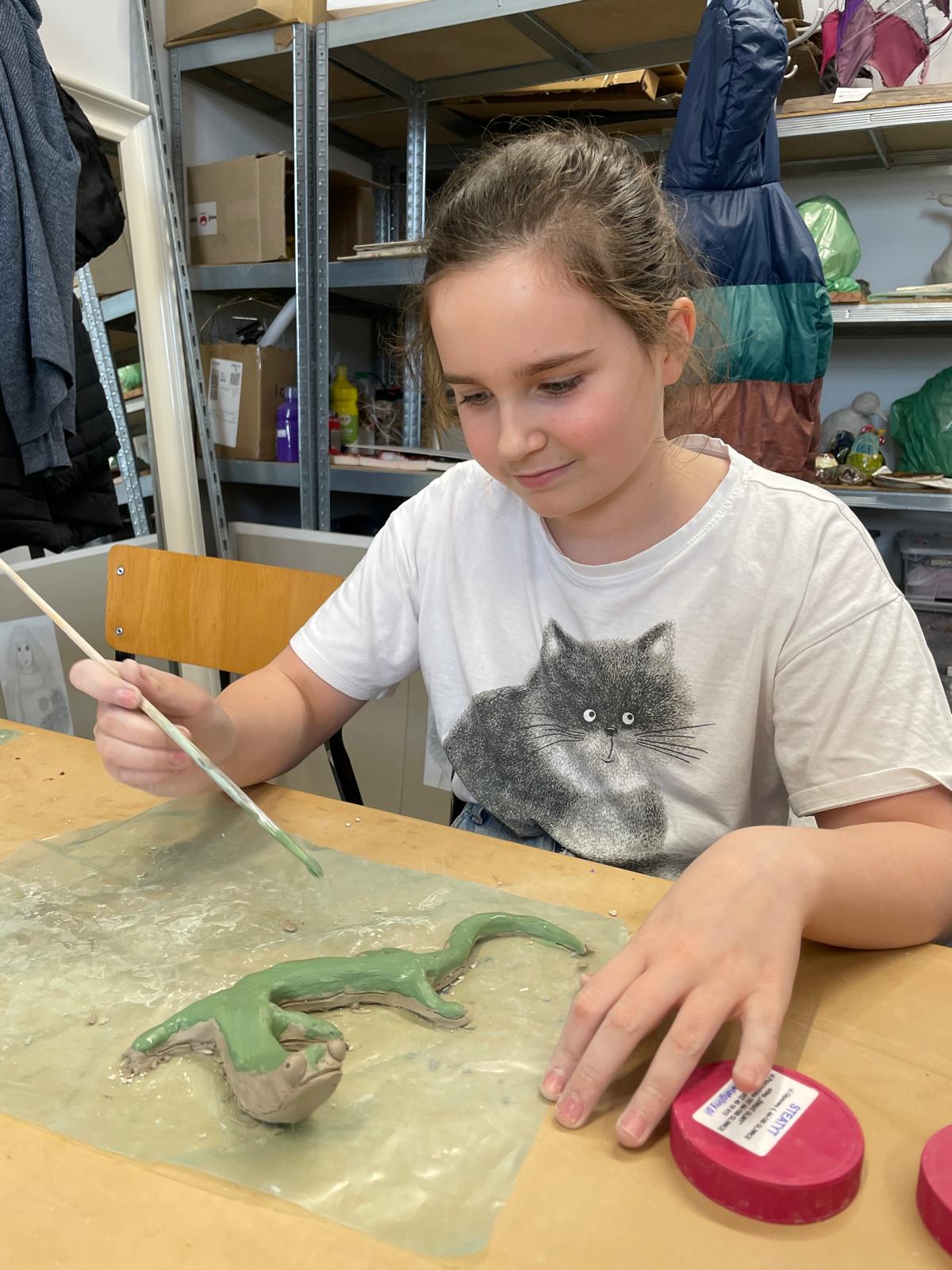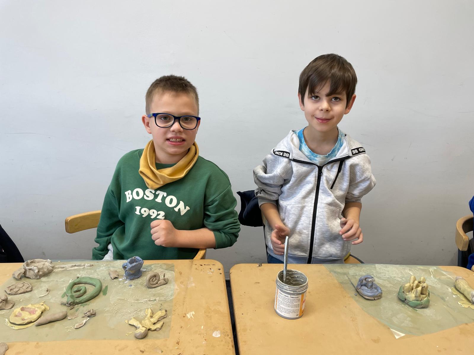 W poniedziałek, 23 marca, uczniowie biorący udział w Konkursie na Jesienne Nakrycie Głowy wzięli udział w warsztatach ceramicznych zorganizowanych w Liceum Plastycznym ALA we Wrocławiu. Czekały na nich przygotowane stanowiska pracy w pracowni rzeźbiarsko-ceramicznej, zwiedzanie pracowni malarskiej, a o systemie nauki w tej szkole opowiadał absolwent naszej szkoły podstawowej Tymek Błoński, który w tym roku zdaje maturę. Na efekty ciężkiej pracy trzeba trochę poczekać. Zrobione przez uczniów rzeźby muszą być suche, żeby można było je wypalić po raz pierwszy w piecu ceramicznym. Potem trafią do pieca ponownie – to wypał ze szkliwem kończący cały proces.