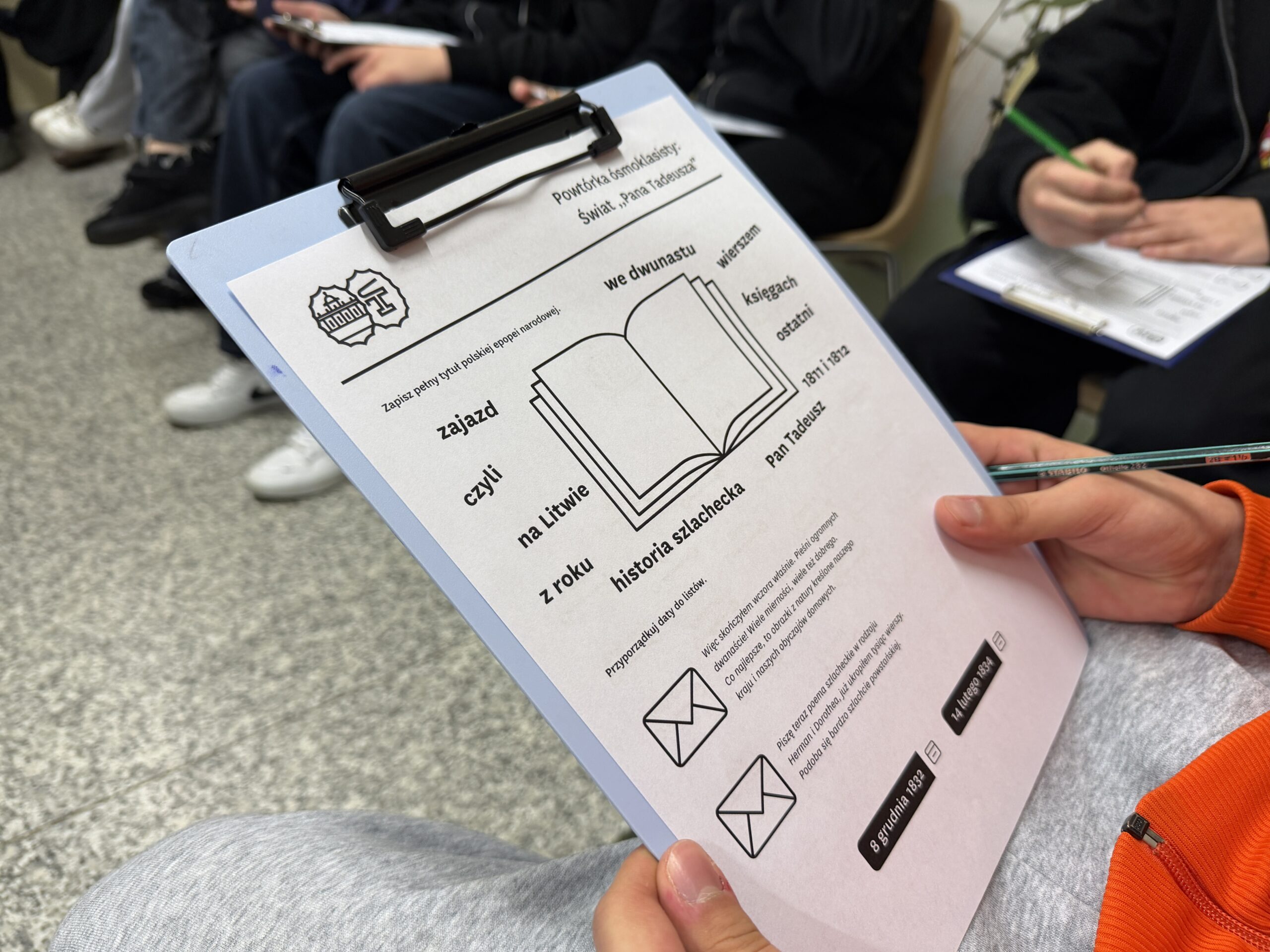 Dnia 27 marca uczniowie klasy 8a wzięli udział w wycieczce edukacyjnej, która pozwoliła im lepiej zrozumieć treść jednej z najważniejszych lektur szkolnych „Pana Tadeusza” A. Mickiewicza. Zajęcia miały formę interaktywną, dzięki czemu młodzież mogła w ciekawy i angażujący sposób utrwalić swoją wiedzę, a także spojrzeć na utwór z nowej perspektywy.