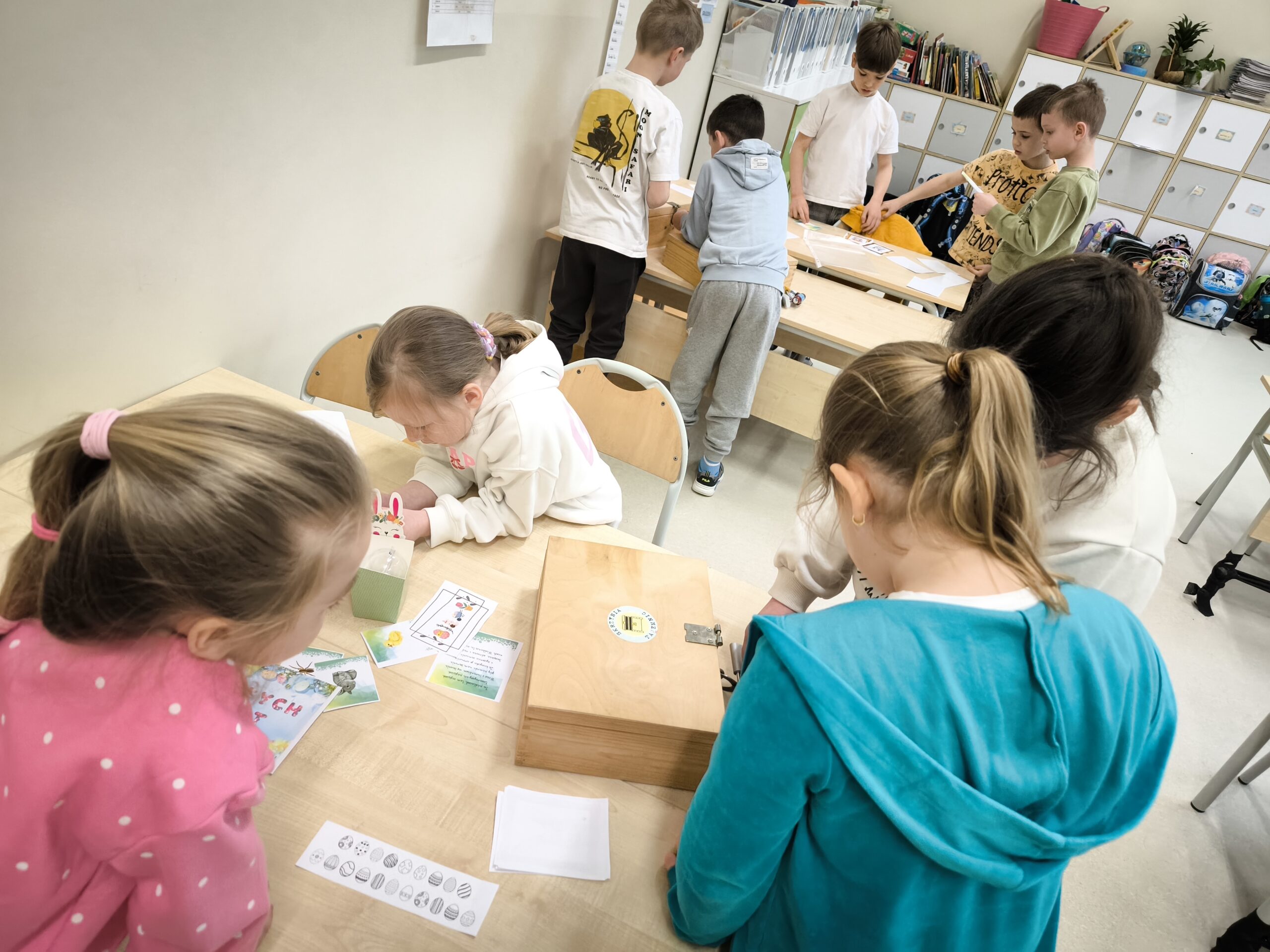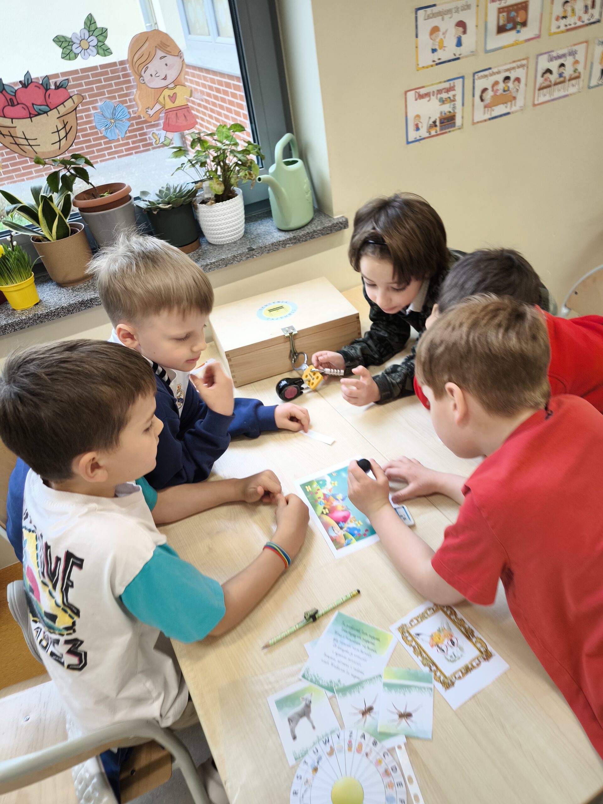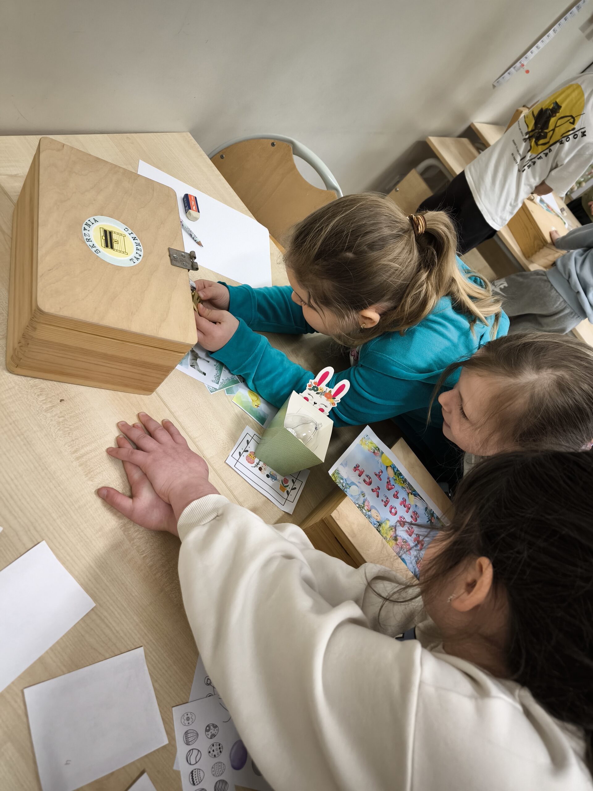 Wielkanocny zając 🐰 postanowił zrobić małego psikusa uczniom klasy 1c! Ukrył słodkości w skrzynce zamkniętej na kłódkę, a żeby ją otworzyć, dzieci musiały wykazać się sprytem, spostrzegawczością i umiejętnością współpracy.